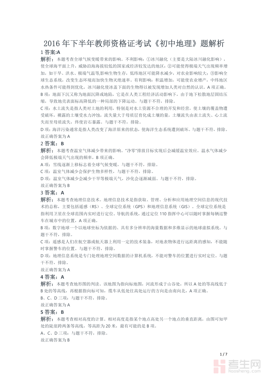 《2016年下半年教师资格证考试《初中地理》题 (解析)》是针对2016年下半年举行的初中地理学科教师资格证考试所编制的备考资料,其核心定位是服务于该次特定考试的复习需求,通过整合对应考试的试题及解析资源,为考生搭建起与考试内容直接对接的学习载体,帮助考生快速把握该次考试的考查方向与命题特点,为后续的针对性复习提供清晰的指引。