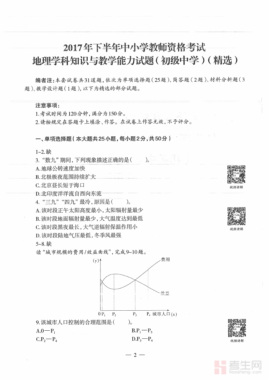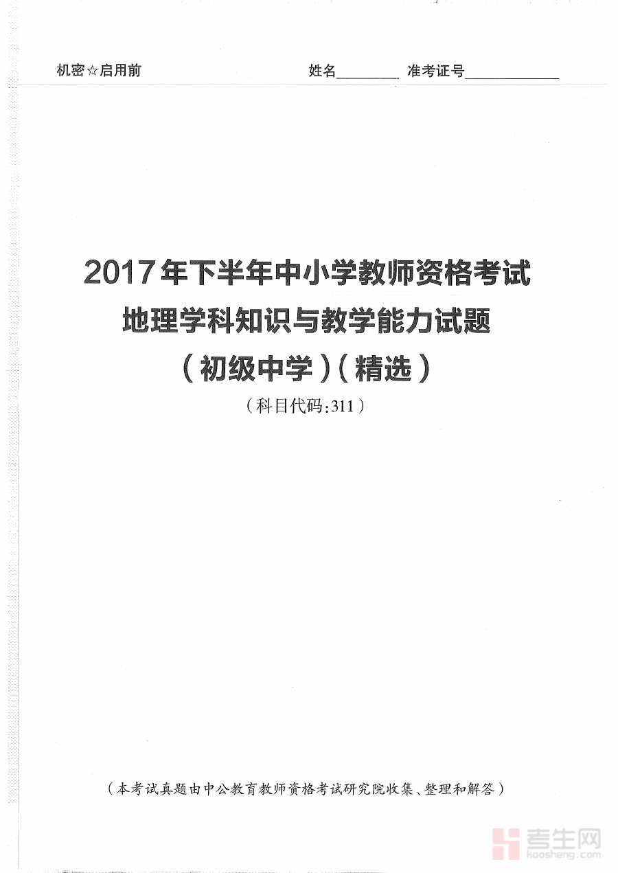 《2017年下半年教师资格证考试《初中地理》题》是2017年下半年面向初中地理学科教师资格申请者的考试相关资料,属于国家教师资格准入制度下的重要备考参考材料。该资料对应特定年份和学科的考试场景,能够为备考者提供与当年初中地理教师资格考试相关的内容指引,帮助备考者初步把握该次考试在学科知识、教学技能等方面的考查方向和形式特点。