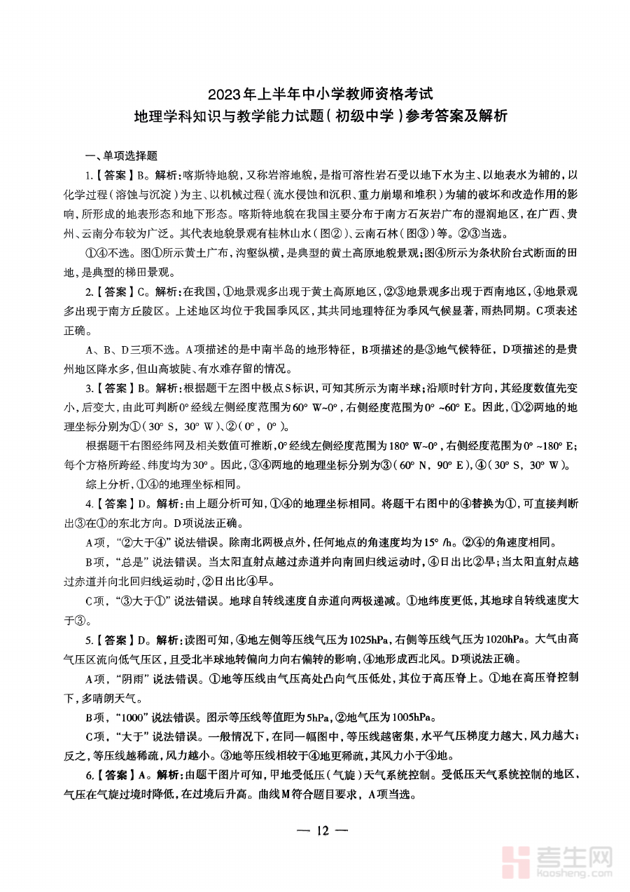 《2023年上半年教师资格证考试《初中地理》解析(精选)》是针对2023年上半年全国教师资格证考试初中地理学科的专项备考资料,其核心定位是为该次考试的备考者提供与考试直接相关的专业解析类内容支持。该资料聚焦当次考试的考查方向与命题逻辑相关的解析维度,帮助备考者建立对考试内容框架的清晰认知,为后续系统复习和重点突破奠定坚实基础。