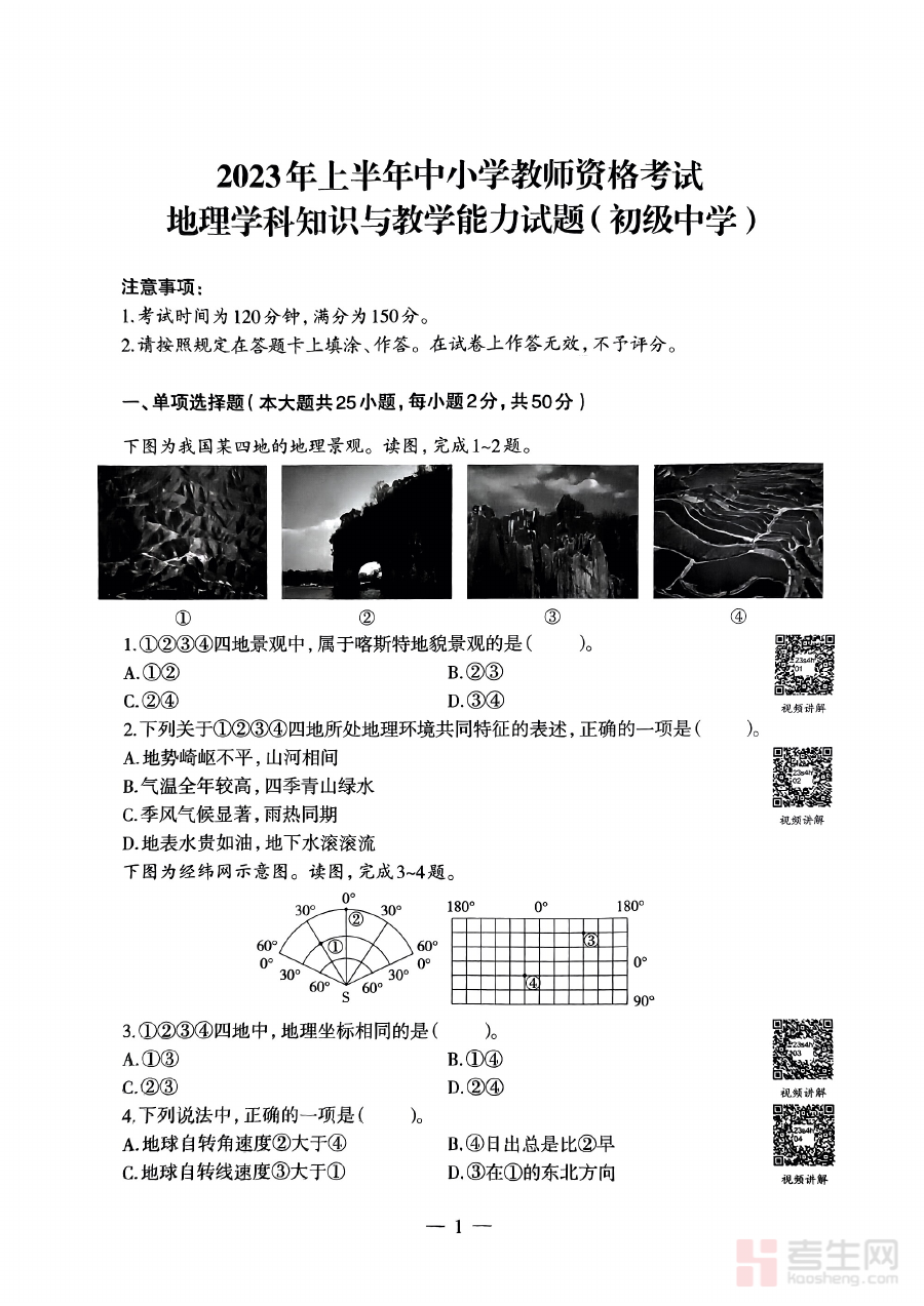 《2023年上半年教师资格证考试《初中地理》题本(精选)》是针对2023年上半年全国教师资格证考试初中地理学科的专项备考资料,严格贴合该次考试的命题方向与学科考核标准,精选了符合考试要求的练习内容,为考生提供了与考试实际场景相匹配的练习载体,助力考生熟悉考试模式与题型特点。