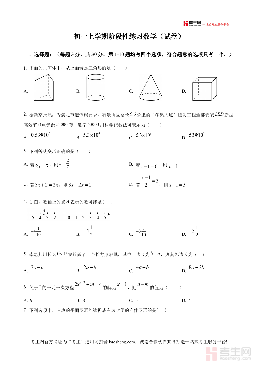 此资料适用于北京市八一学校2024-2025学年七年级学生,能够辅助其熟悉本校月考的命题风格与考试节奏,通过原卷练习提升应试能力,也为家长了解孩子的学习状态提供直观的参考依据,具有较强的阶段检测与备考指导价值。