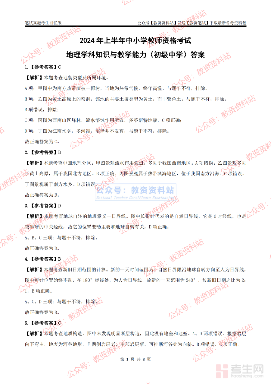 《2024上半年初中《地理》答案及解析》是针对2024年上半年初中地理学科相关测评活动的配套辅助资料,涵盖了该时间段内初中地理学习过程中可能涉及的各类练习、模拟测试或阶段性考试的参考答案与专业解析内容。作为初中地理备考体系中的重要组成部分,它旨在为使用者提供精准的答题参考与深度的思路解析,帮助使用者在学习过程中及时验证自身对地理知识的掌握程度,是衔接知识学习与测评反馈的关键桥梁。