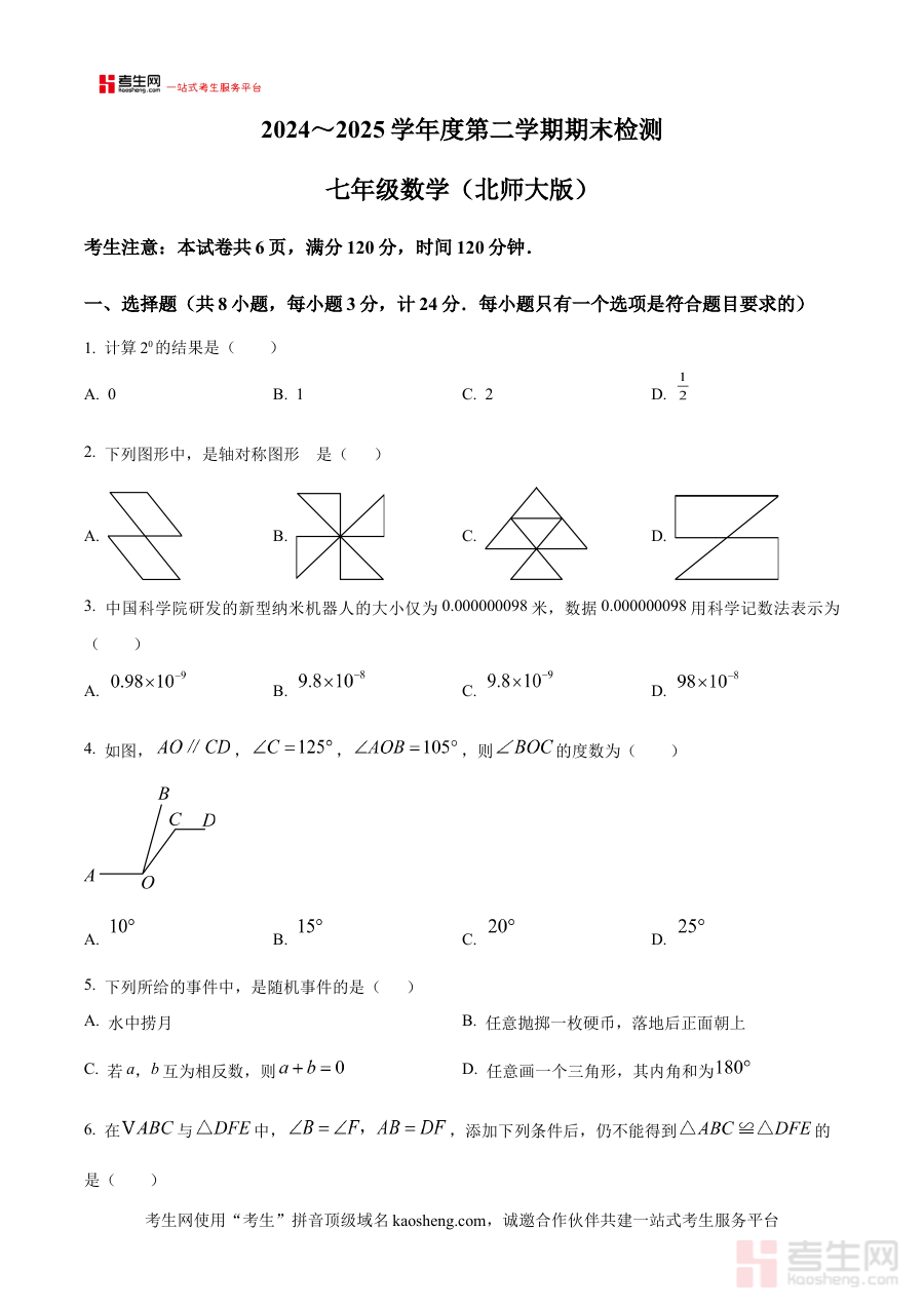 《精品解析:陕西省西安市碑林区2024-2025学年七年级下学期期末检测数学试题(原卷版)》是针对陕西省西安市碑林区特定学年段的数学学科期末检测资料。该资料聚焦2024-2025学年七年级下学期的数学期末检测需求,呈现了符合区域教学标准和考试要求的原卷内容,为相关使用者提供了与本地期末检测直接对接的备考资源,能够帮助使用者直观了解该地区七年级数学期末检测的试卷形式和考查框架,为后续的复习准备奠定基础。