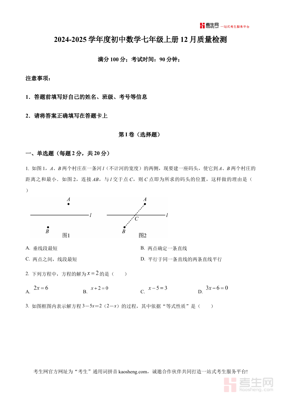 《精品解析:北京市西城外国语学校 2024-2025学年 七年级上学期12月质量检测数学试题(原卷版)》是针对北京市西城外国语学校2024至2025学年七年级上学期12月校内质量检测的数学学科备考资料。该检测作为七年级上学期中期后的关键阶段评估考试,旨在考察学生对该学期前半段数学核心知识的掌握程度与应用能力,原卷版形式完整保留了考试的原始命题结构、题型设置及考查方向,为学生提供了贴近真实考试场景的备考资源。