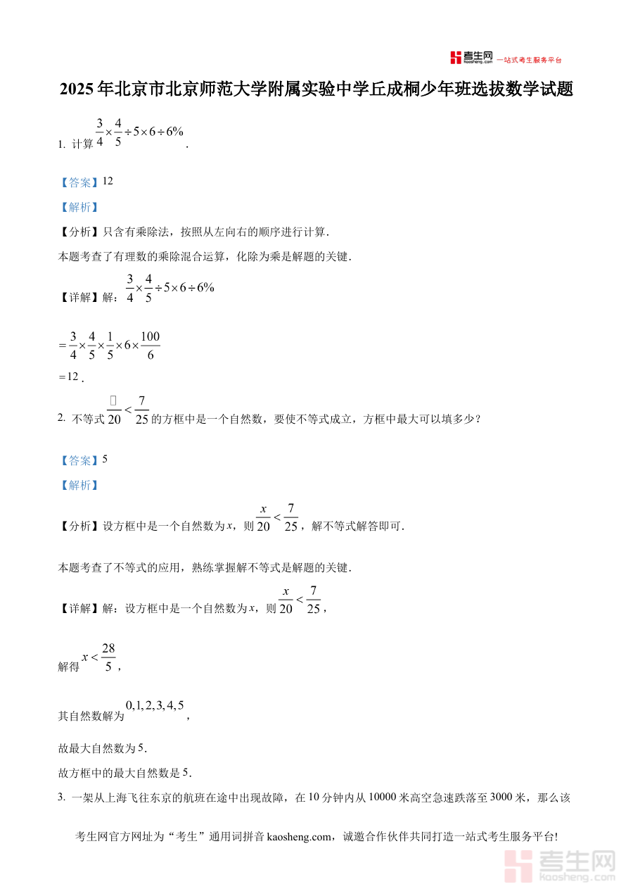 此资料主要适用于计划报考2025年北京师范大学附属实验中学丘成桐少年班的学生群体。对于这类考生而言,该资料不仅是阶段检测自身数学水平的重要工具,更是优化备考策略、强化解题能力的关键参考,能够帮助他们在选拔考试中更好地发挥自身水平,为成功进入丘成桐少年班创造有利条件。