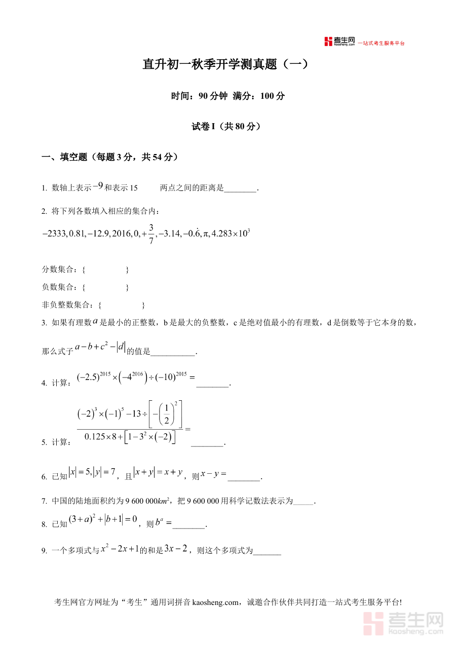 《精品解析:北京市十一学校2024-2025学年上学期七年级开学测数学试卷(原卷版)》是针对北京市十一学校2024至2025学年上学期七年级开学阶段数学测试的配套备考资料,聚焦该地区特定学校的七年级开学检测场景,为相关学生提供贴合实际考试情境的练习载体。