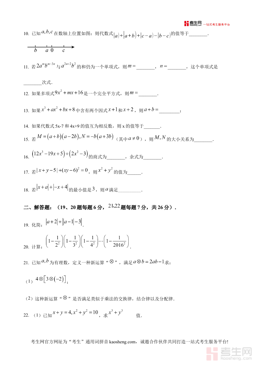 该资料可用于七年级学生在开学初期进行数学学科的学情诊断,帮助学生快速了解自身在假期后对数学知识的掌握情况,同时也为教师或家长制定针对性的学习规划提供参考依据,助力学生及时调整学习节奏以适应新学期的数学学习要求。