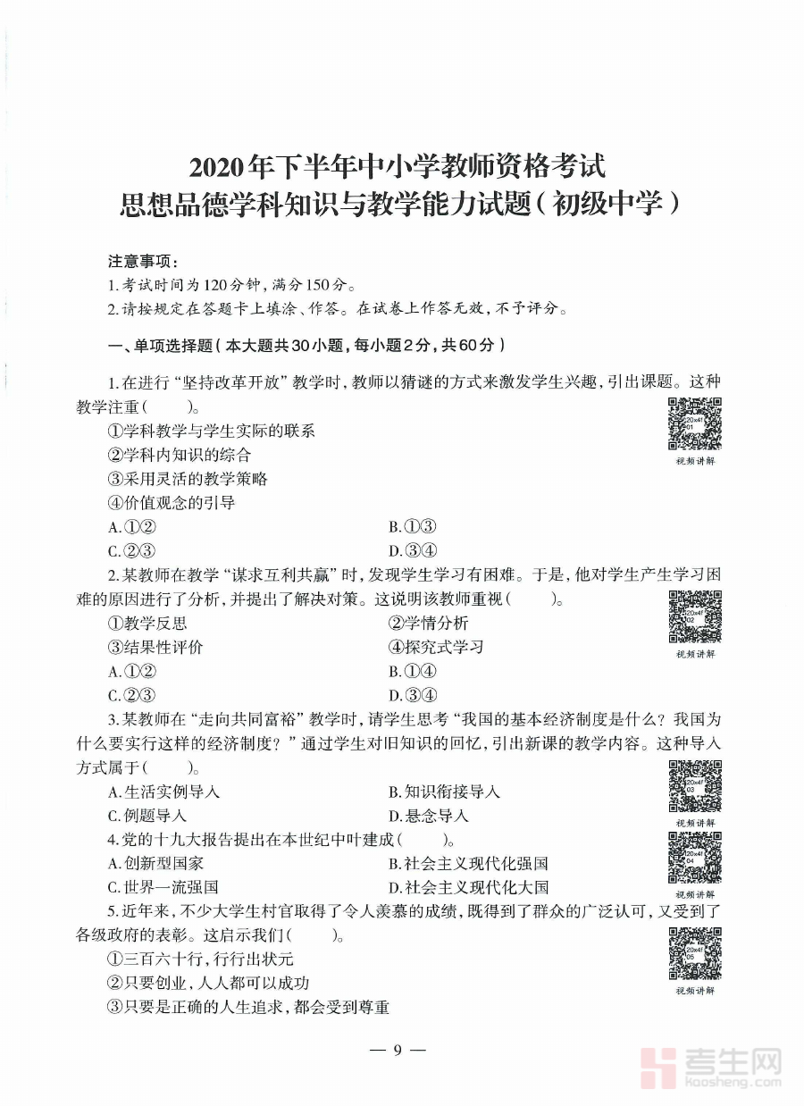 《2020下半年教师资格证考试《初中政治》题》是2020年下半年全国教师资格证考试初中政治学科的专用备考资料,精准对应该年度下半年的考试时间节点与初中政治学科的考察范畴,为考生提供贴合考试实际需求的练习载体,助力考生初步把握考试的学科方向与整体脉络,是备考过程中不可或缺的辅助资源之一。