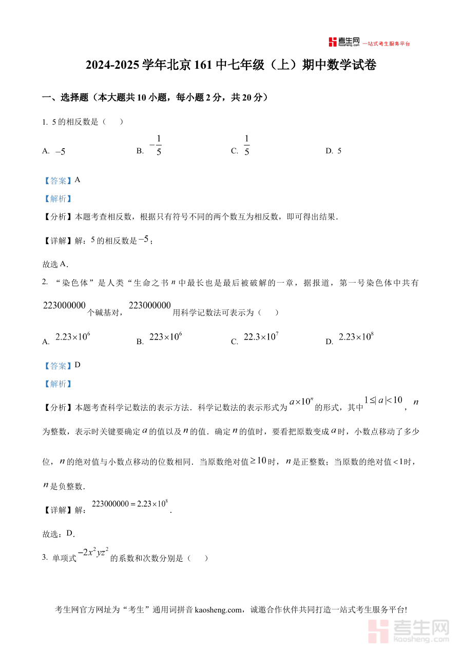 《精品解析:北京市第一一六中学2024--2025学年上学期期中七年级数学试卷 (解析版)》是针对北京市第一一六中学2024至2025学年第一学期七年级数学期中考试编制的专业备考资料,结合该学年上学期的教学进度与期中检测目标,为学生提供了与校内考试直接匹配的解析内容,帮助学生精准把握期中数学考试的方向与要求,是贴合该校七年级学生期中复习需求的针对性资料。