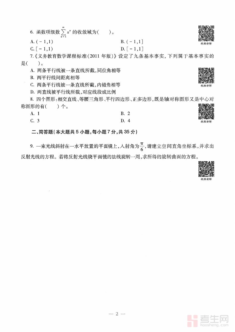 本资料适用于所有计划参加初中数学教师资格证考试的备考人员,特别是希望通过真实考题提升应试能力的考生。它能帮助考生熟悉考试节奏与命题风格,为后续的针对性复习提供有效支撑,助力备考者更高效地备战考试。