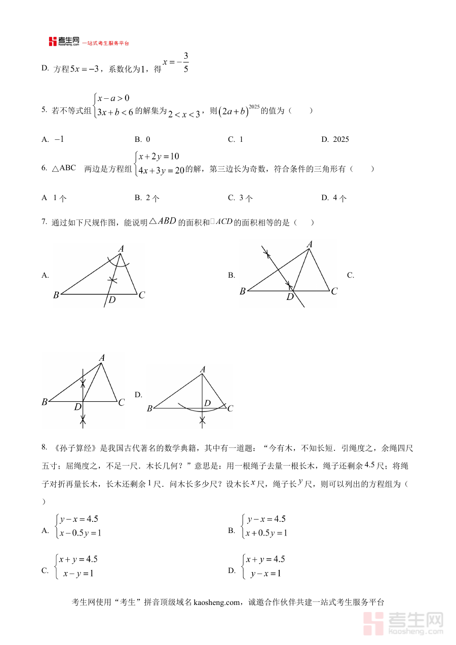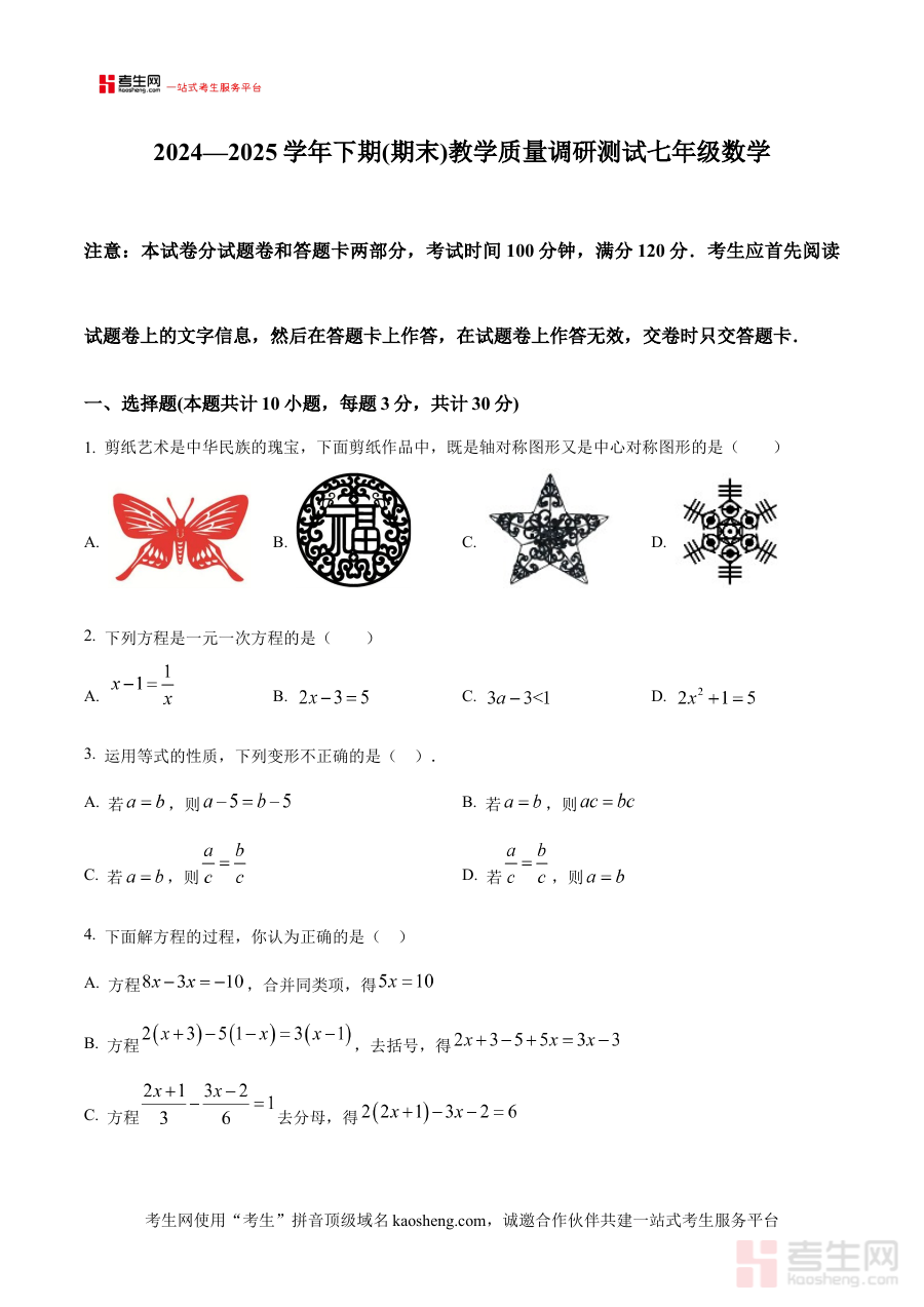 《精品解析:陕西省西安市雁塔区部分学校2024-2025学年七年级下学期期末联考数学试题(原卷版)》是针对2024-2025学年陕西省西安市雁塔区部分学校联合组织的七年级下学期期末数学考试所编制的备考资料。该资料依托区域联考的命题背景,准确反映了当地七年级数学教学的阶段性要求,为相关师生提供了贴合实际考试场景的参考内容,有助于使用者提前熟悉联考的考试框架与整体方向,是衔接日常教学与期末评估的重要桥梁。