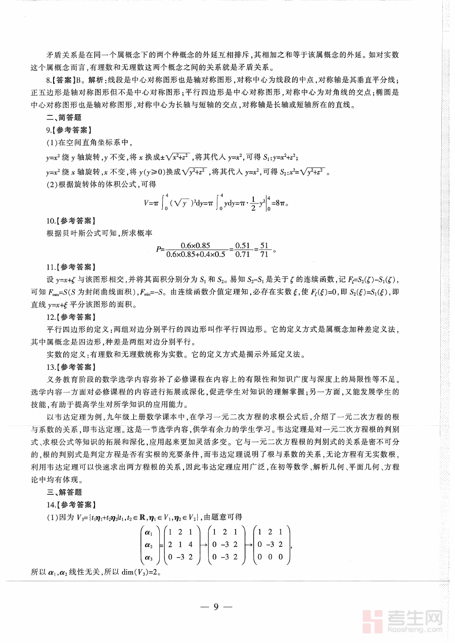 该资料适用于所有备考初中数学教师资格证的考生群体,无论是处于基础复习阶段的新手考生还是冲刺阶段的进阶考生,都能从中获取有价值的指导。其提供的解析内容有助于深化使用者对考试要求的理解,强化应试技巧,提升对真题的把握能力,为顺利通过教师资格证考试奠定坚实基础。