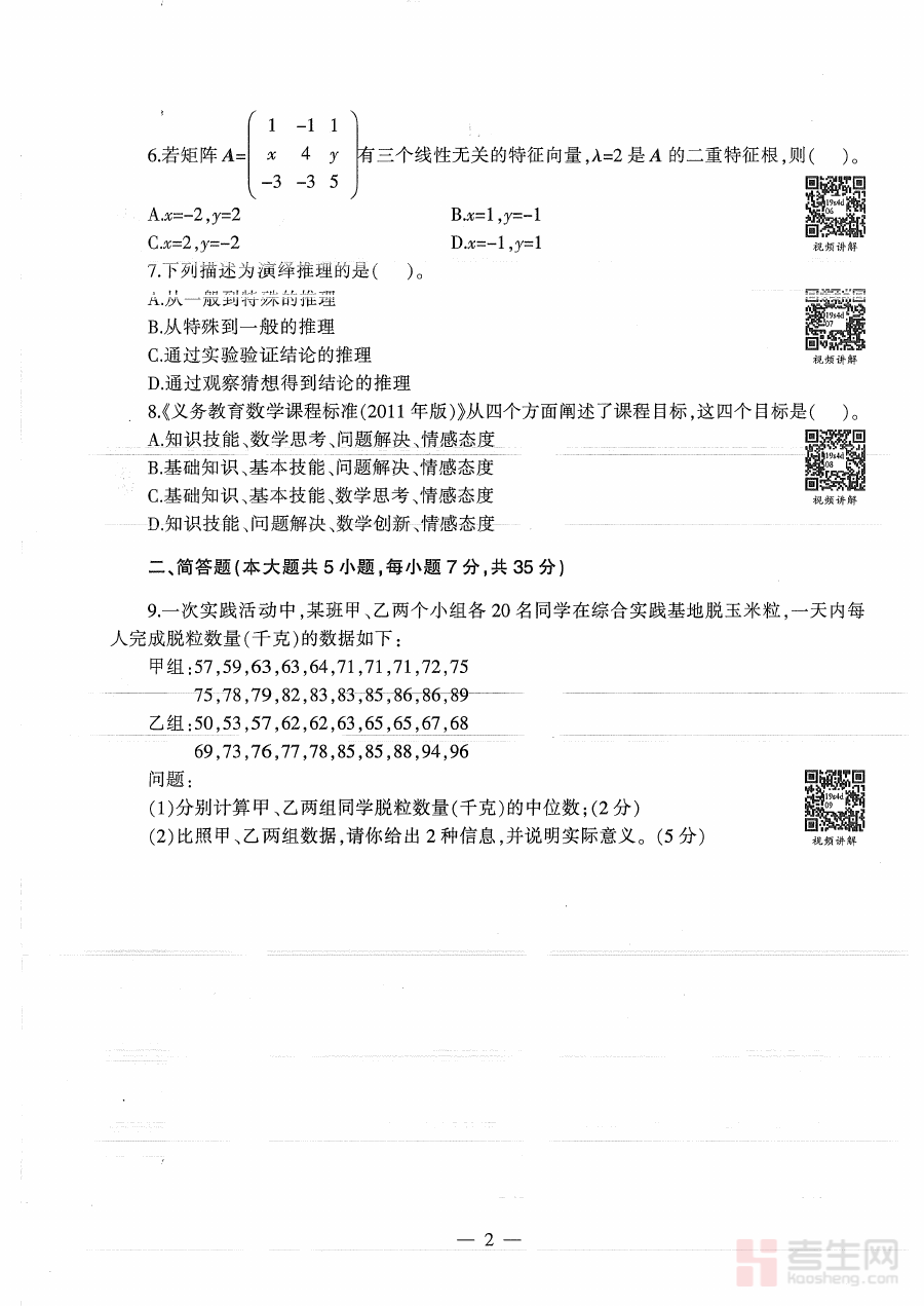 该真题在备考过程中具有多维度实用价值:可用于备考初期的学情诊断,帮助考生快速定位自身在初中数学教学知识与技能方面的薄弱环节;也可作为中期备考规划的重要依据,考生通过分析真题的考查重点,能够合理调整复习计划,明确后续学习的优先级;同时还能在冲刺阶段用于阶段检测,检验阶段性复习成果是否符合考试标准,及时发现并弥补知识漏洞。