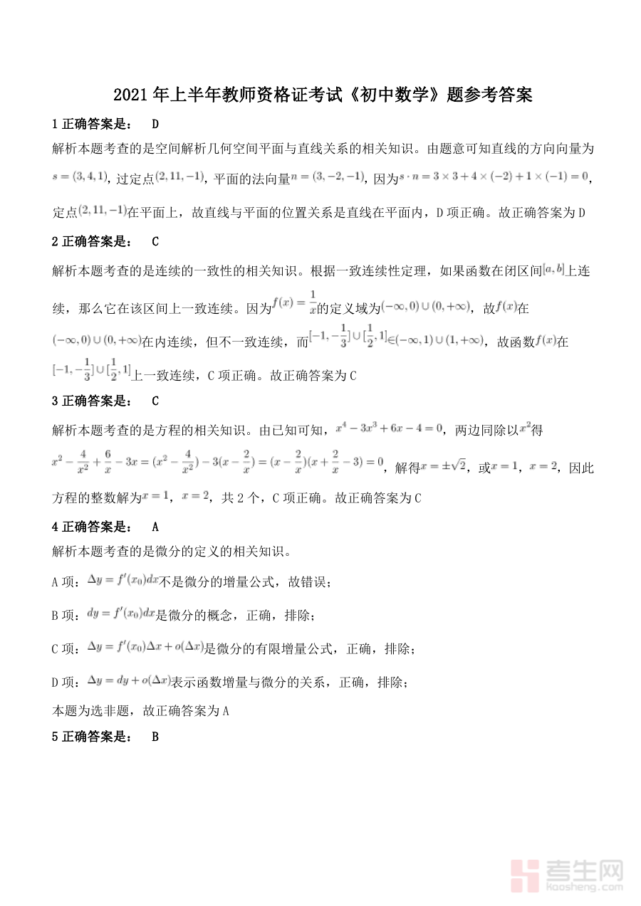 《2021年上半年教师资格证考试《初中数学》真题解析》是针对2021年上半年全国教师资格证初中数学学科考试的专业备考辅助资料。该资料依托当次考试的真实命题背景,聚焦初中数学学科的教师资格考核核心要求,为考生呈现与考试实际情况高度贴合的解析框架,帮助考生快速把握该次考试的整体方向与关键考查维度,为后续备考提供清晰且具参考性的依据。