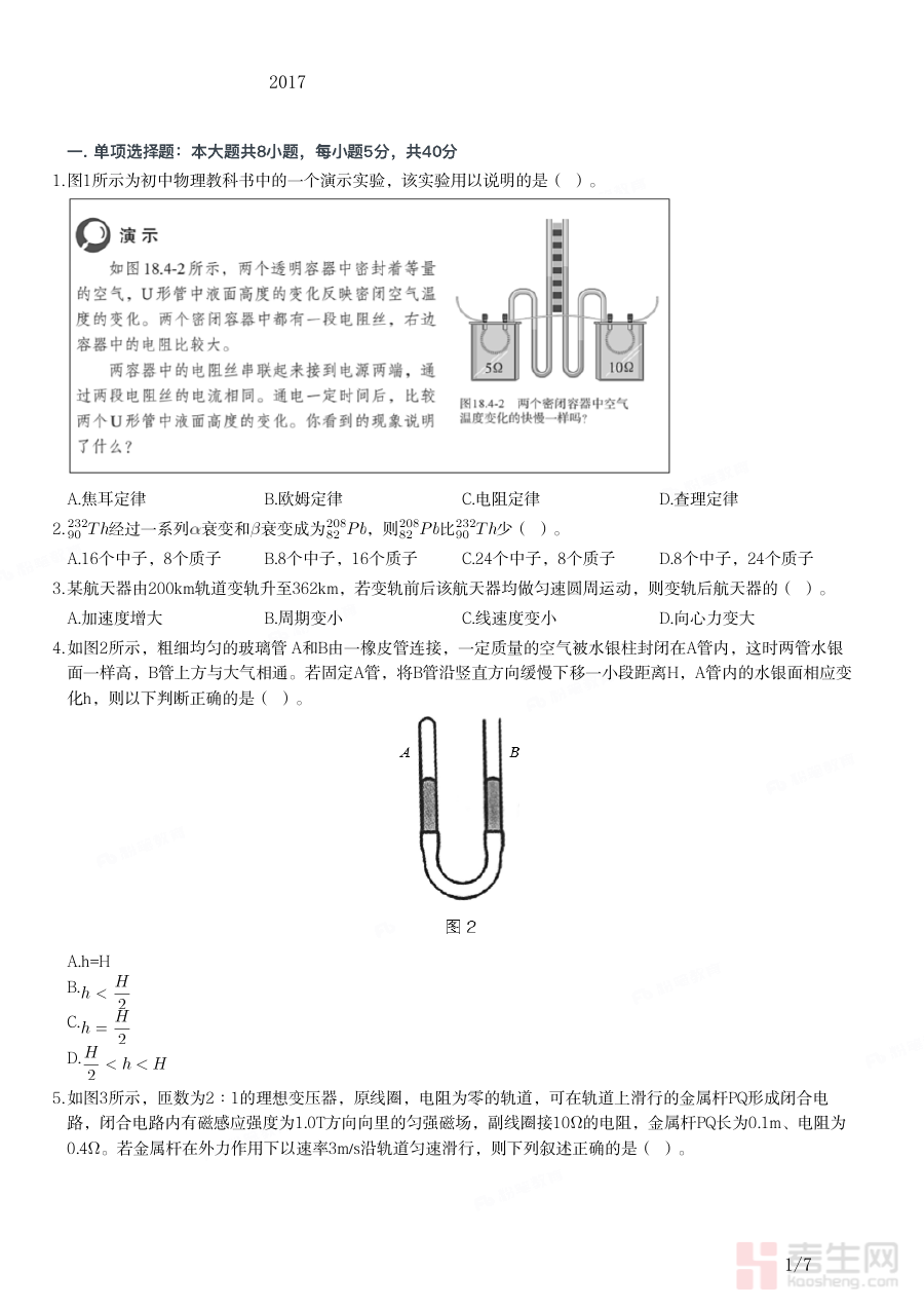 《2017年上半年教师资格证考试《初中物理》题》是针对2017年上半年全国教师资格证考试初中物理学科的试题资料,属于该类考试备考过程中的重要参考素材。它基于当时的教师资格证考试大纲编制,能够在一定程度上体现该时期初中物理科目考试的命题思路与考查方向,为备考者提供与实际考试场景相契合的练习内容,帮助备考者初步感知考试的整体框架与核心考查维度,是备考阶段不可或缺的实践类资源之一。