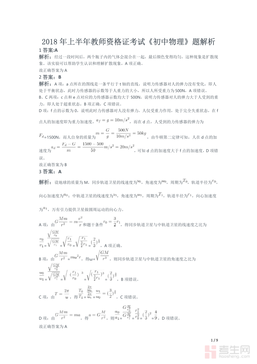 《2018年上半年教师资格证考试《初中物理》解析》是针对2018年上半年全国教师资格证考试初中物理学科所编制的专业备考解析资料。该资料紧密围绕当次考试的核心考察范畴展开,为考生提供与考试直接关联的内容解读服务,帮助考生快速建立对考试整体结构与重点方向的认知框架,是连接理论知识学习与应试能力提升的重要桥梁,能有效填补考生在备考过程中对考试实际要求认知的空白,为后续复习提供清晰的方向指引。