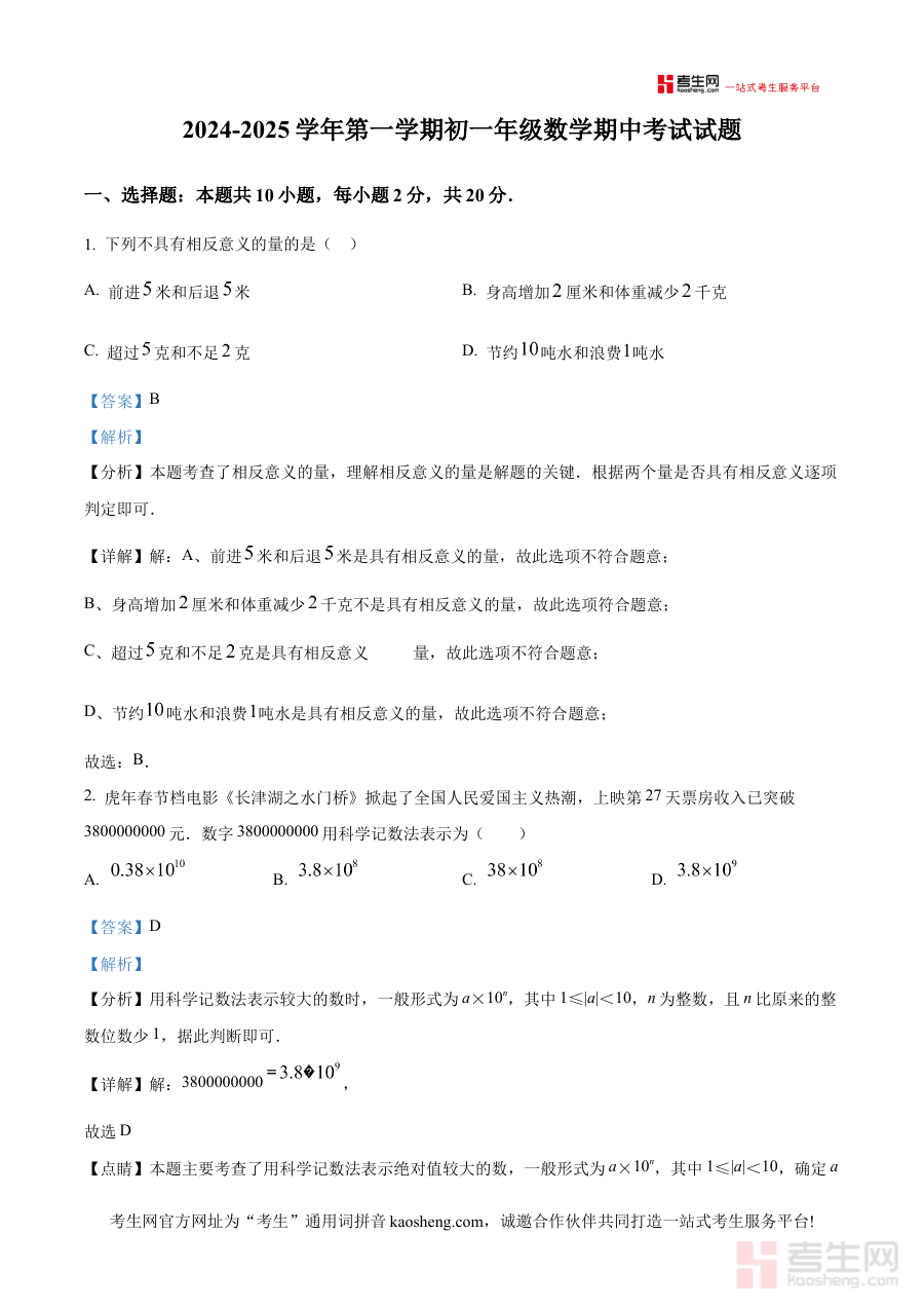 《精品解析:北京市第五十中学2024-2025学年七年级上学期期中考试数学试卷(解析版)》是针对北京市第五十中学2024至2025学年七年级学生上学期期中考试的数学学科备考资料,结合该学年该阶段的教学进度与考试要求,为学生提供贴合实际的复习参考依据。