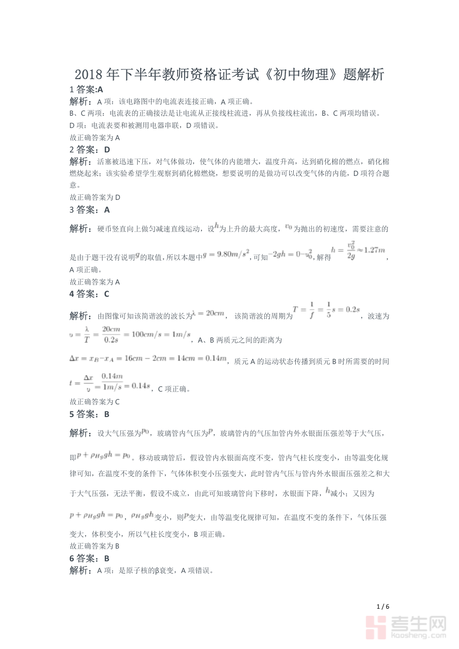 《2018年下半年教师资格证考试《初中物理》解析》是针对2018年下半年全国教师资格证考试初中物理科目的专项解析资料,聚焦该次考试的核心考查方向与内容框架,为备考者提供与考试直接相关的专业参考内容,帮助备考者快速把握该次考试的整体脉络与核心要求,是备考过程中具有明确针对性的辅助资料。