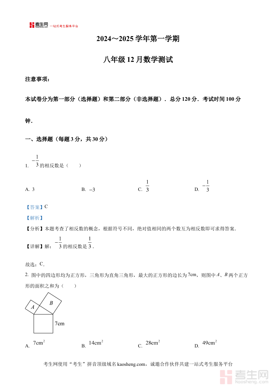 《精品解析:陕西省西安市西安交通大学附属中学分校2024-2025学年八年级上学期12月月考数学试题(解析版)》是针对2024-2025学年陕西省西安市西安交通大学附属中学分校八年级上学期12月数学月考编制的解析类备考资料,整合了该次月考数学试题的详细解析内容,旨在为相关使用者提供与该阶段考试直接相关的学习支持与参考依据,帮助使用者精准把握该次月考的考查方向与核心要求。