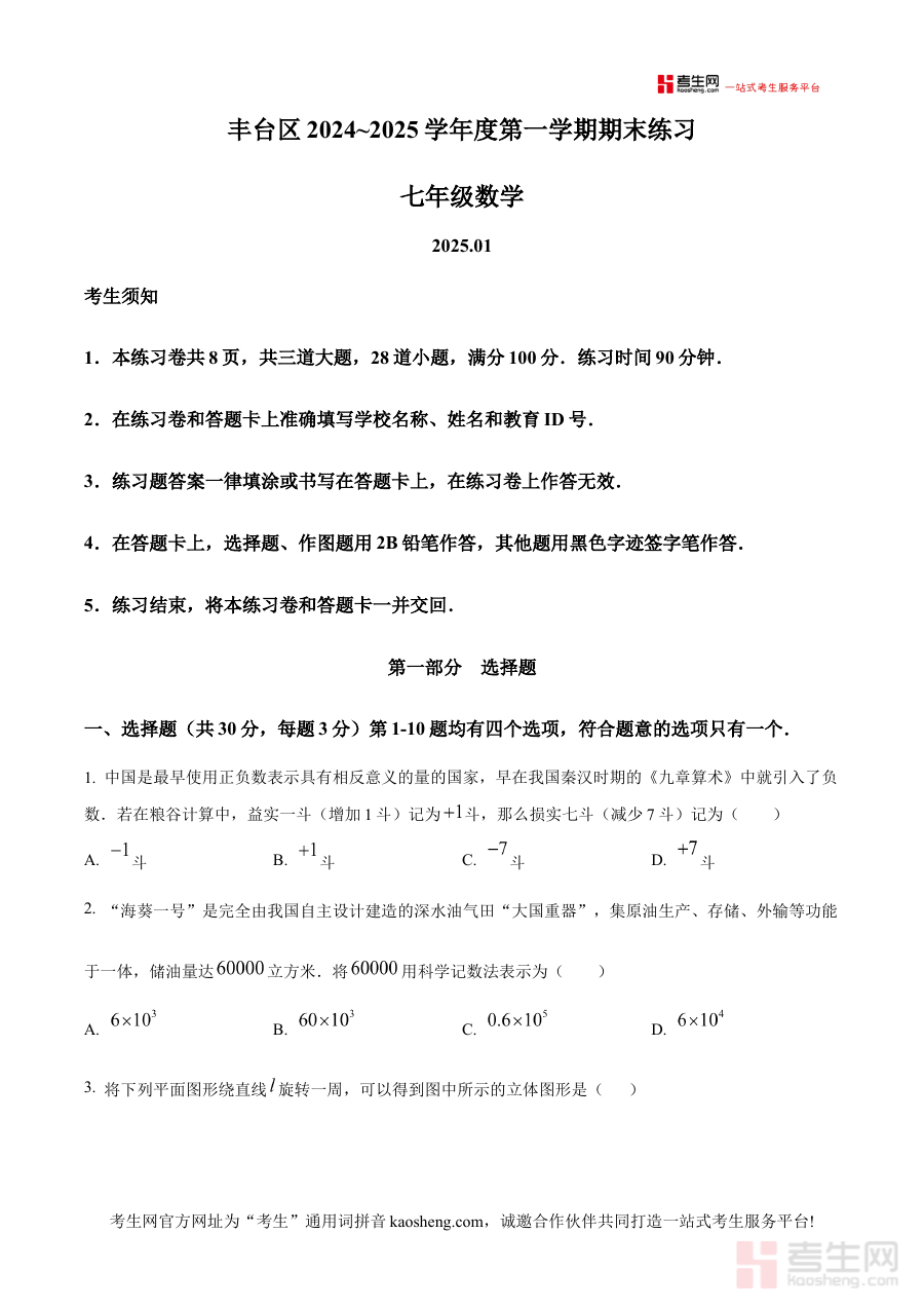 《精品解析:北京市丰台区2024-2025学年七年级上学期期末数学试题(原卷版)》是针对北京市丰台区2024至2025学年七年级上学期数学期末测试的专属备考资料,精准匹配该地区该学年七年级上学期数学学科的期末考核范围与命题方向,为使用者提供与本地期末考高度契合的原卷资源,助力使用者提前熟悉考试的整体框架与本地考核特点。