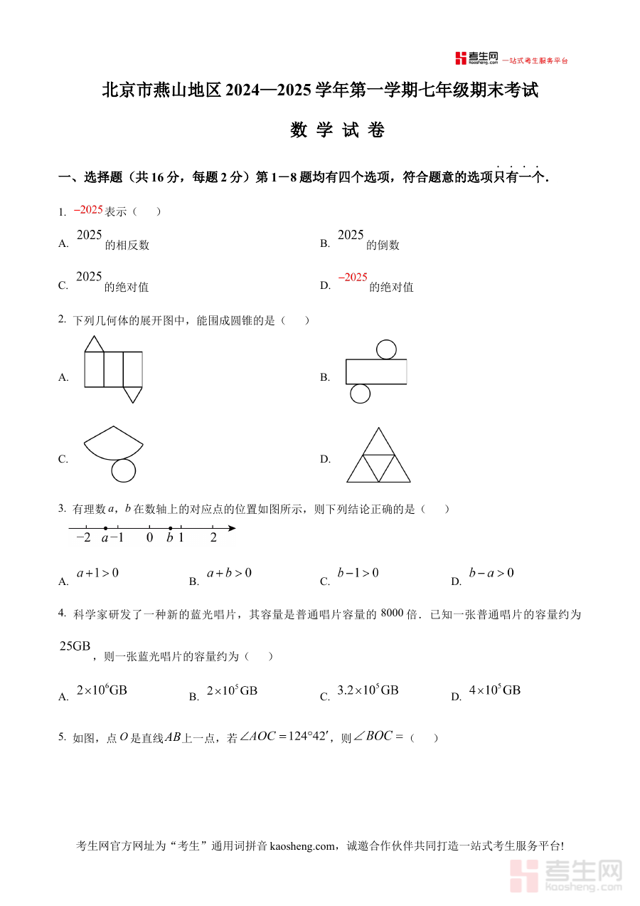 《精品解析:北京市燕山地区2024—2025学年上学期七年级期末考试数学试卷 (原卷版)》是针对北京市燕山地区2024至2025学年上学期七年级数学期末考试的专用备考资料,精准匹配该地区特定学段的期末测评体系,为使用者提供与本地考试要求高度契合的原卷内容。