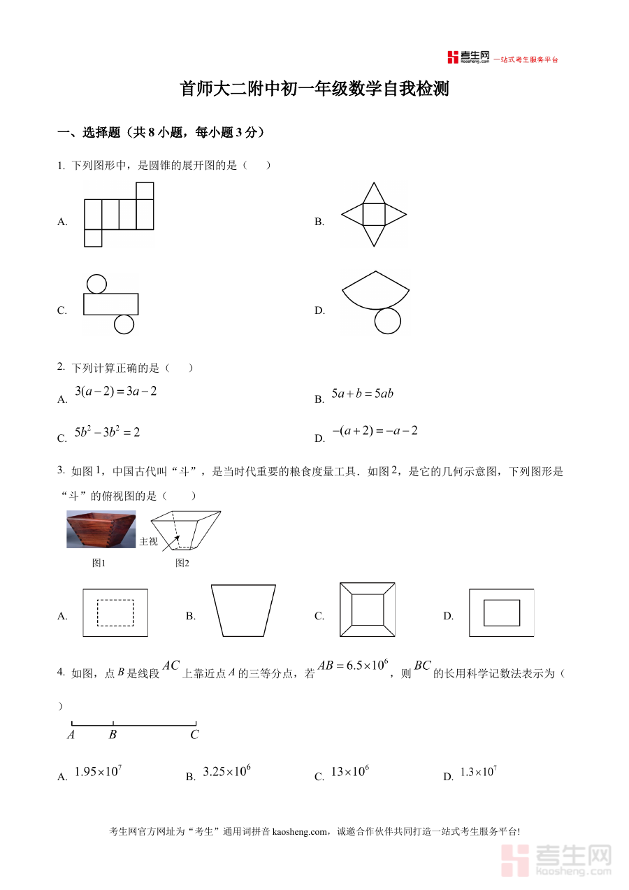 《精品解析:北京市海淀区首都师范大学第二附属中学2025-2026学年七年级上学期数学12月月考试题(原卷版)》是北京市海淀区首都师范大学第二附属中学在2025-2026学年七年级上学期数学学科12月份月考的官方原卷资料,属于初中数学阶段性考试的核心备考资源之一,能够为使用者提供该学校该学期该月份数学考试的真实试卷内容呈现,是贴合该校教学进度与考试要求的权威资料。