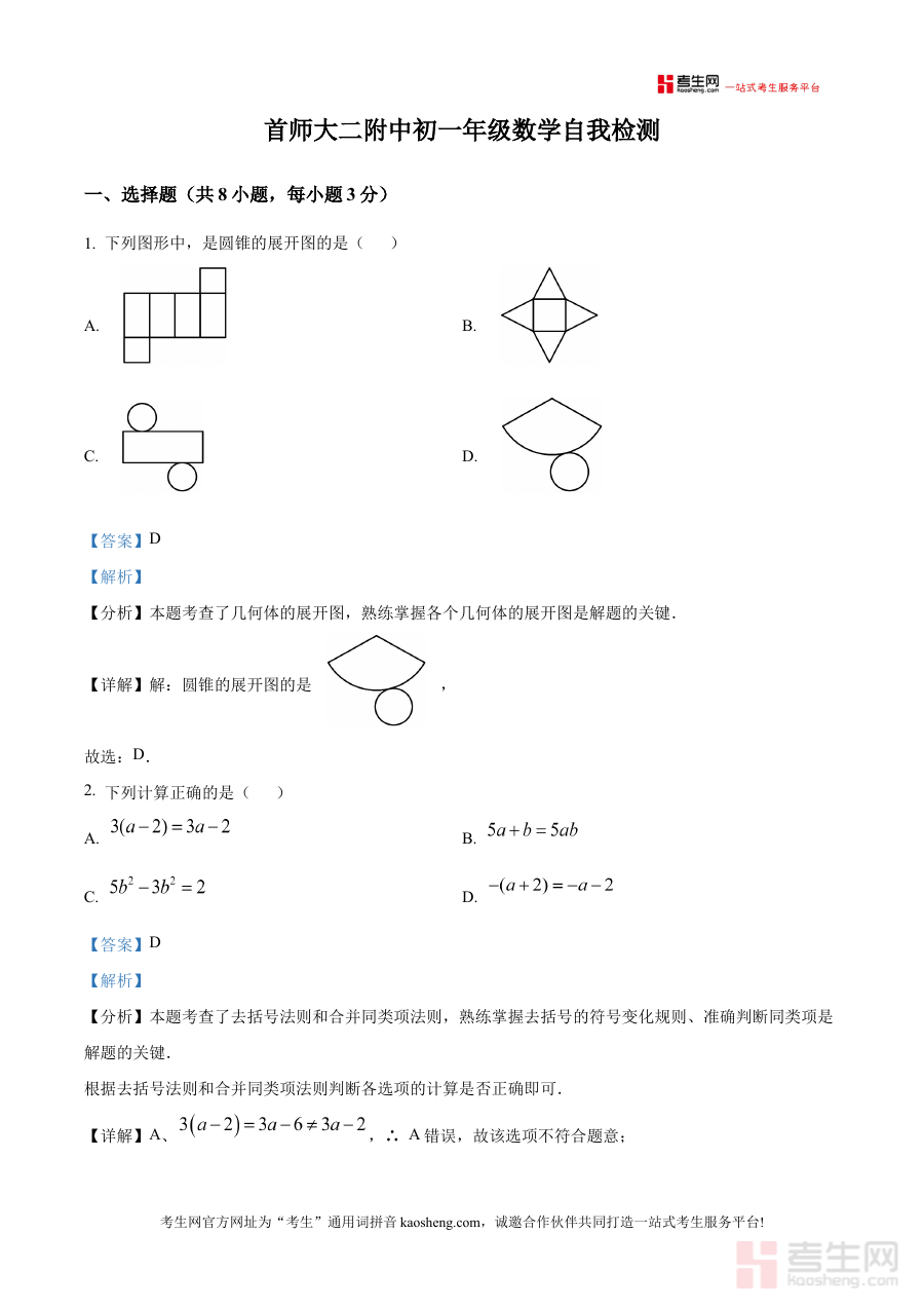 本资料主要适用于北京市海淀区首都师范大学第二附属中学2025-2026学年七年级学生,也可供同年级同类学习需求的学生及数学教师参考使用,其解析内容有助于强化学生对阶段知识的掌握程度,提升应对月度检测的能力,为后续学习奠定扎实基础。