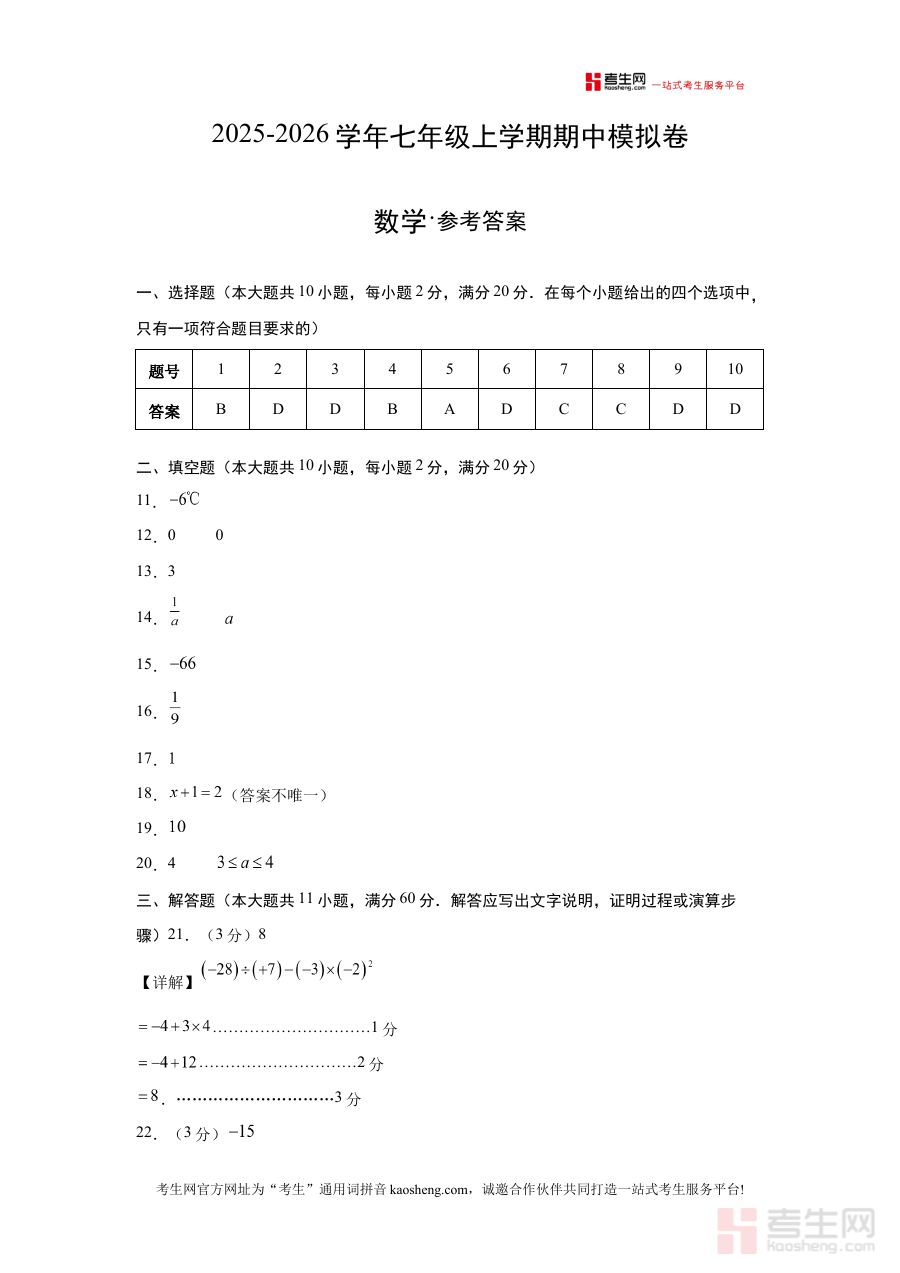 该资料适用于北京地区使用新教材的七年级学生、数学教师及相关教育工作者。对于学生而言,参考答案能帮助其清晰认知自身学习短板,明确后续复习重点;对于教师来说,则可借助该资料高效开展教学反馈与指导,提升期中备考的针对性与有效性,共同推动期中阶段学习目标的达成。