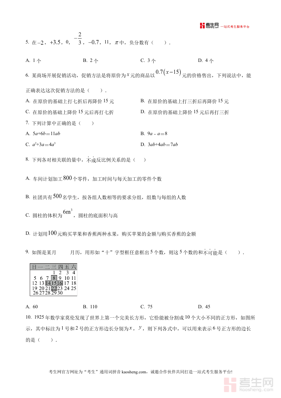 该资料可用于学生进行阶段性学情诊断,帮助其了解自身对七年级上学期数学知识的掌握程度,也可辅助教师或家长为学生制定针对性的备考规划,通过原卷形式的练习还原考试场景,提升学生的应试适应能力。