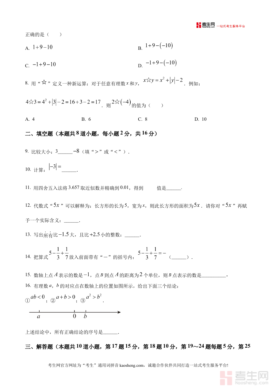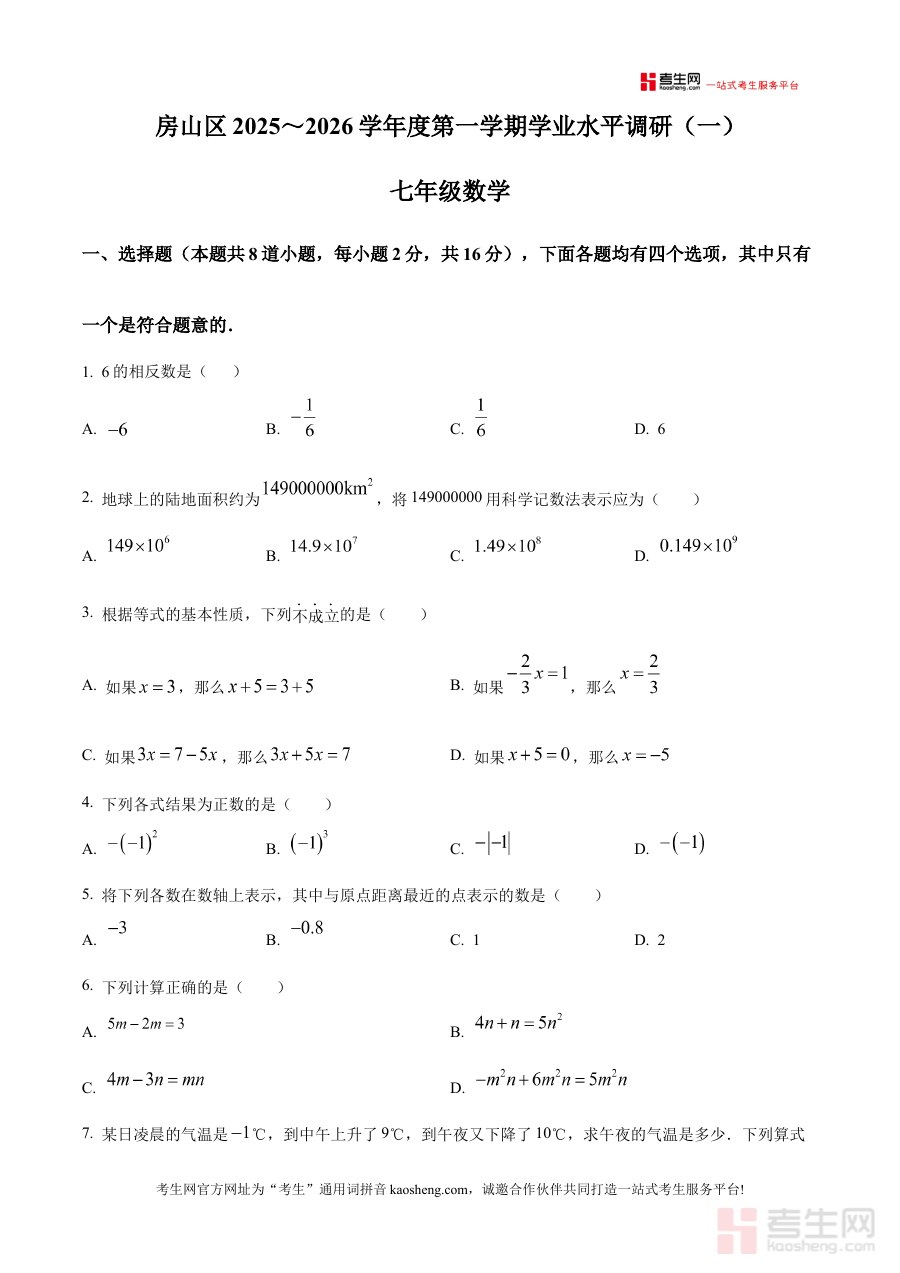 《精品解析:北京市房山区2025-2026学年上学期学业水平调研(一)七年级数学期中试题(原卷版)》是针对北京市房山区2025-2026学年上学期七年级数学学科的期中阶段学业水平调研类资料,属于该区域七年级学生期中备考的配套资源,能够帮助使用者了解该地区该学段数学学科期中阶段的调研方向与考查框架。