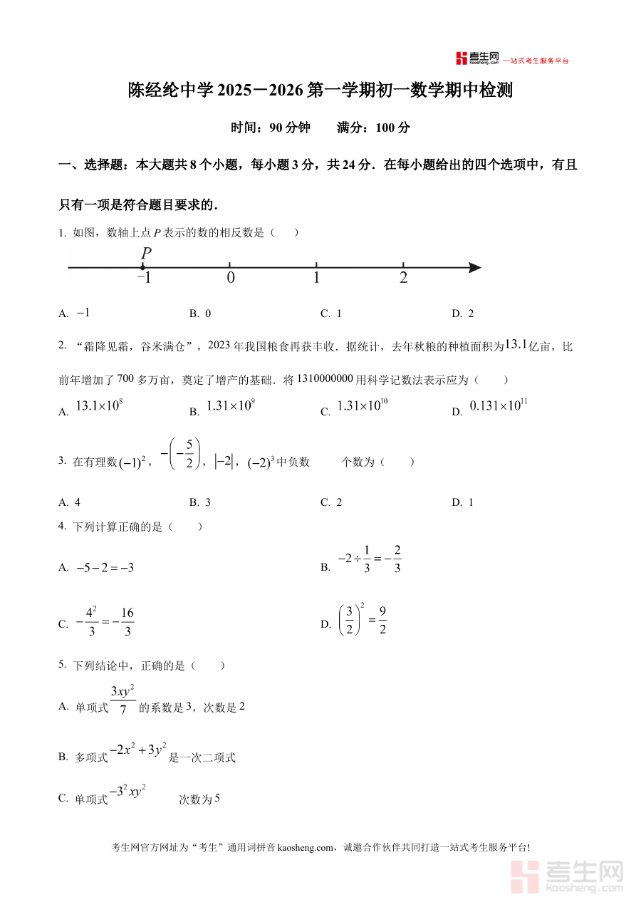 《精品解析:北京市陈经纶中学2025-2026学年上学期七年级期中数学试卷 (原卷版)》是北京市陈经纶中学针对2025至2026学年上半学期七年级学生数学学科期中阶段考试所提供的原卷形式备考资料。该资料依托学校该学期的教学进度与考试要求编制,能够真实反映该校七年级数学期中考试的试卷结构与考查方向,为使用者提供贴近实际考试场景的备考资源支撑,帮助使用者提前了解考试的整体框架与核心考查维度。