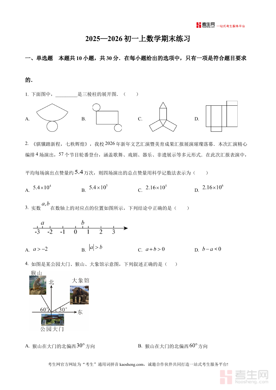 《精品解析:北京市第五十七中学2025-2026学年七年级上学期期末考试数学试题(原卷版)》是针对北京市第五十七中学2025-2026学年七年级上学期数学期末考试的备考资料,聚焦该学年七年级上学期的数学期末测评需求,为学生提供与校内考试直接相关的原卷资源。