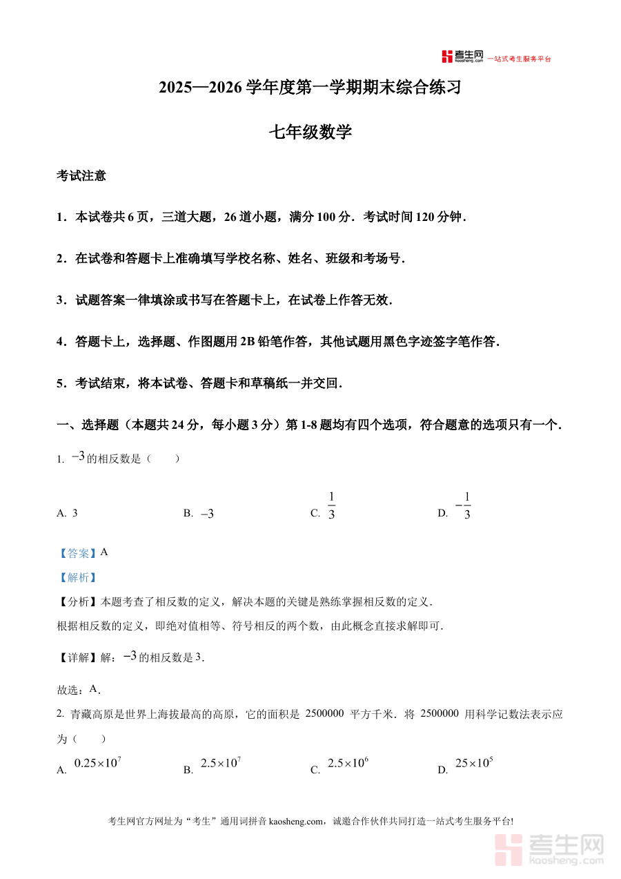 《精品解析:北京门头沟2025一2026学年度第一学期期末综合练习七年级数学(解析版)》是针对北京门头沟区域2025-2026学年度第一学期七年级数学期末综合练习的配套解析类备考资料。它紧密贴合当地该学期数学教学进度与期末考核导向,为使用者提供对应练习的专业解析支持,具有鲜明的区域性和阶段性适配特征。