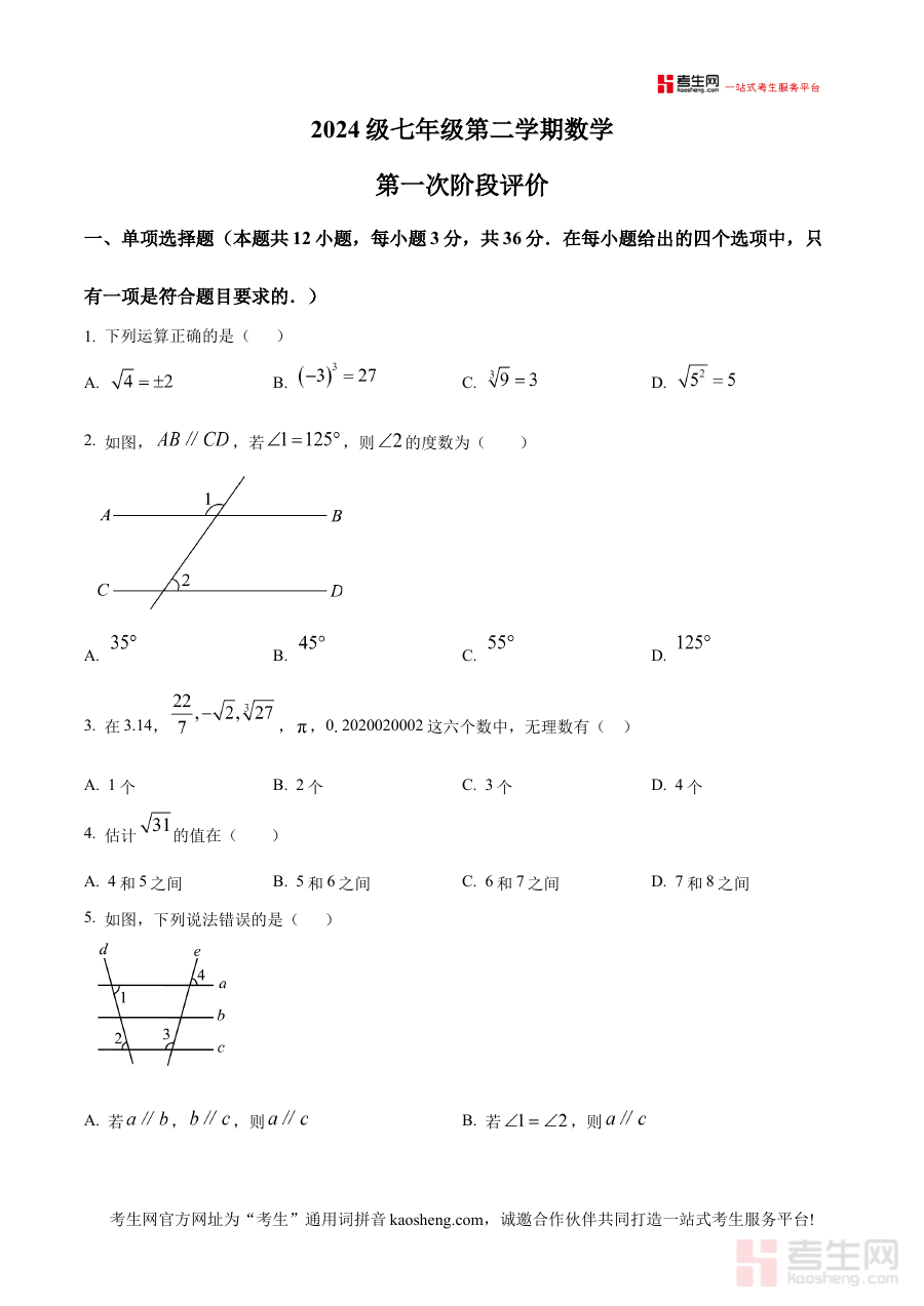 该资料可用于学生进行阶段性学习成果自我检测,帮助教师了解班级整体学习状况以调整教学策略,也能为家长掌握孩子数学学习进度提供参考,助力三方协同完成七年级下学期数学知识的阶段性巩固与提升。