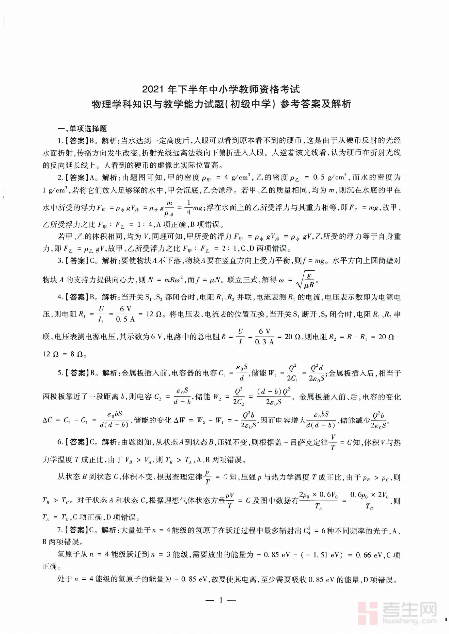 《2021年下半年教师资格证考试《初中物理》解析》是针对2021年下半年全国范围内开展的教师资格证初中物理学科考试所编制的专业备考辅助资料。该资料聚焦于该次考试的整体框架与核心考查维度,旨在为考生提供与考试直接相关的解读内容,帮助考生快速把握考试的基本方向,为后续的系统备考奠定清晰且扎实的基础。