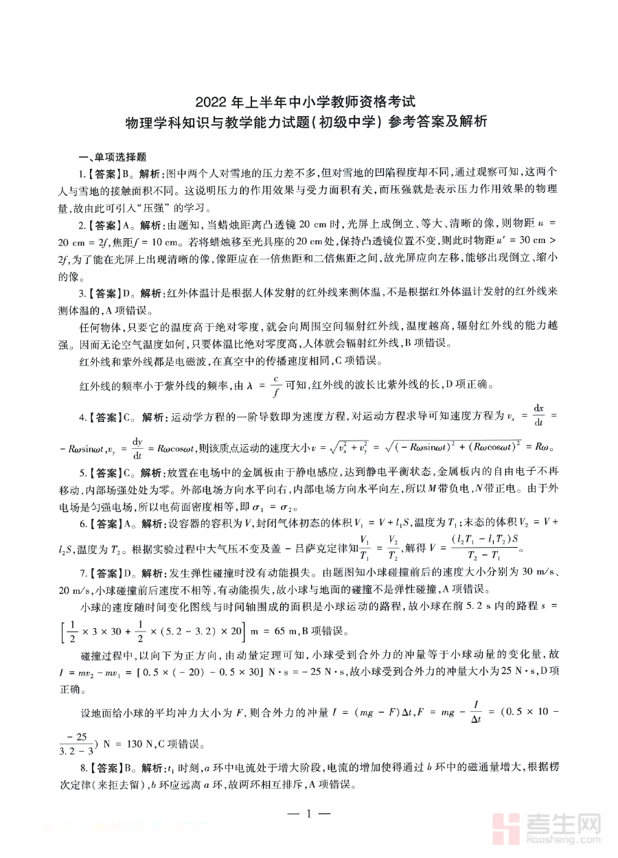 《2022年上半年教师资格证考试《初中物理》解析》是针对2022年上半年全国教师资格证初中物理学科考试的专业解析类备考资料。该资料聚焦此次特定时间段与学科的考试需求,旨在为考生提供与考试直接相关的专业分析和参考支持,帮助考生快速建立对该次考试的整体认知框架,为后续系统备考奠定坚实基础。