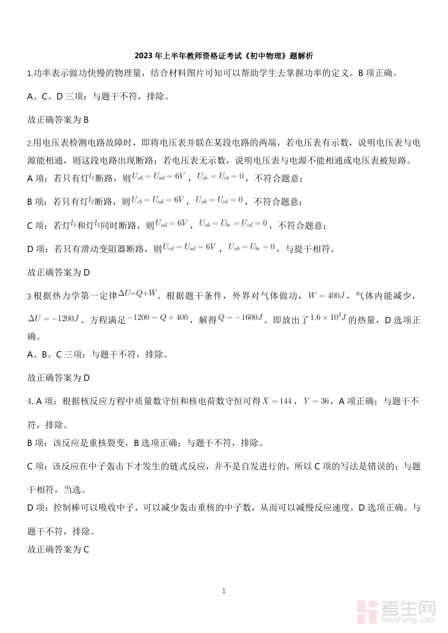 该资料适用于所有准备参加2023年上半年教师资格证初中物理学科考试的考生,尤其适合处于复习中期需要进行阶段检测或优化备考策略的人群。借助该资料的解析内容,考生能够更精准地定位复习重点,合理分配时间资源,增强备考信心,为顺利通过考试提供有力支持。