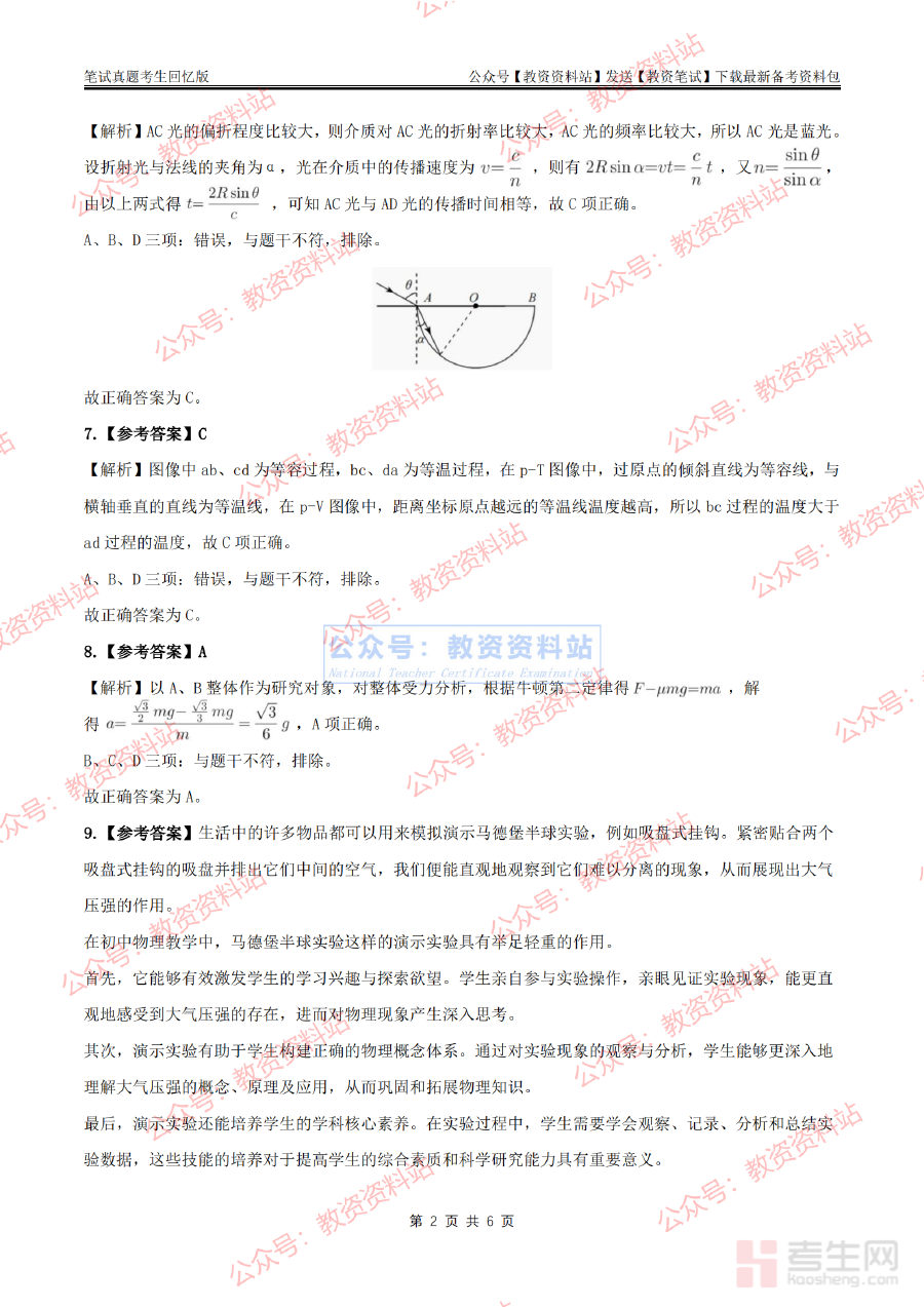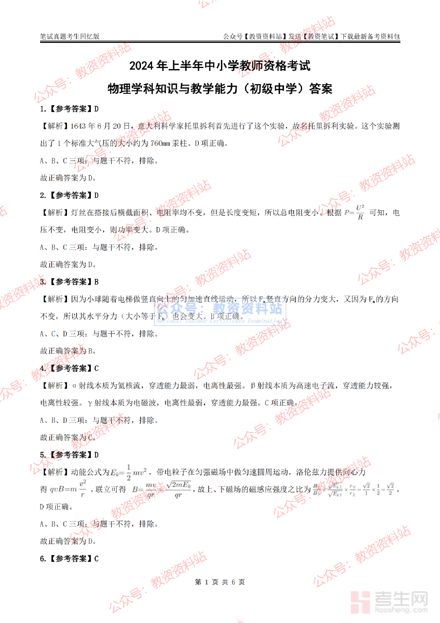 《2024上半年初中《物理》答案及解析》是针对2024年上半年初中物理阶段学习与评估需求的配套资料,依托该时期初中物理的学习进度与相关练习或测试内容,为初中物理学习者提供精准的答案参考与深度解析服务。它能够帮助学习者在完成对应学习任务后及时核对结果,明确自身对物理知识的掌握程度,是2024年上半年初中物理学习过程中重要的辅助工具之一。