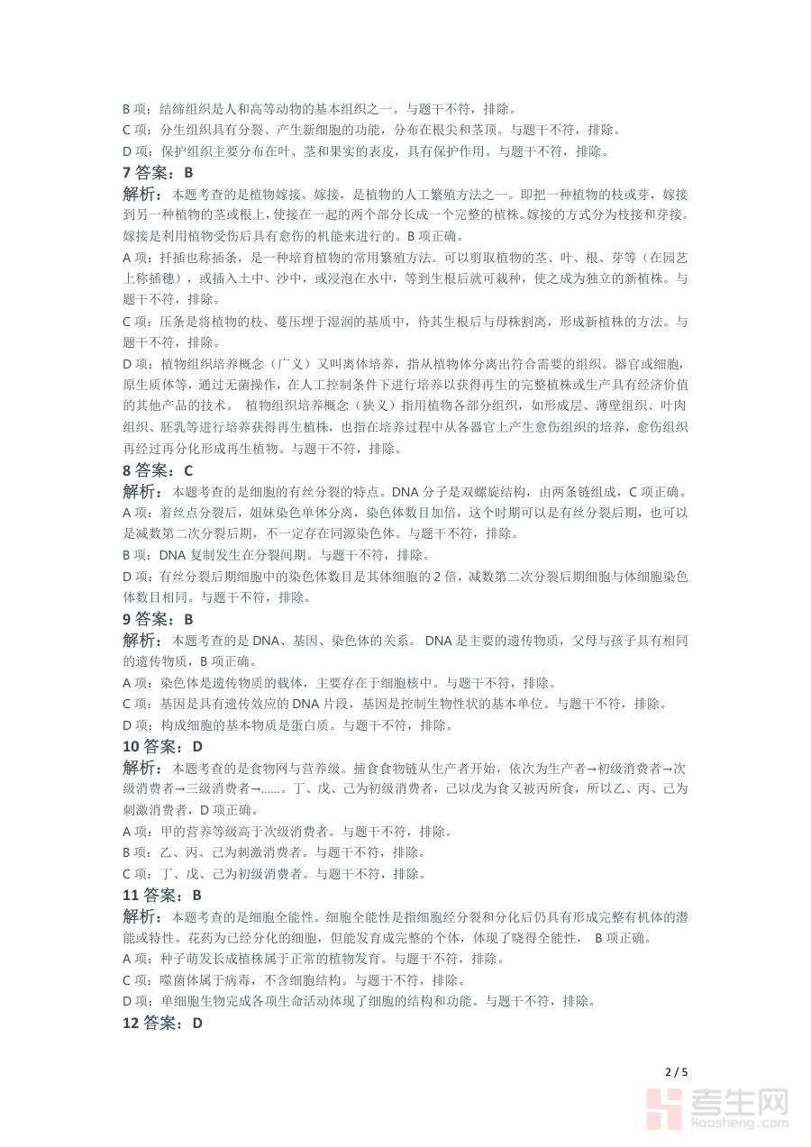 此资料适用于准备参加初中生物教师资格证考试的考生群体,特别是处于备考中期需要阶段检测或冲刺阶段强化应试技巧的考生,其解析部分能帮助考生深入理解考点本质及答题规范,对优化备考策略、增强考场应对能力具有显著指导价值。