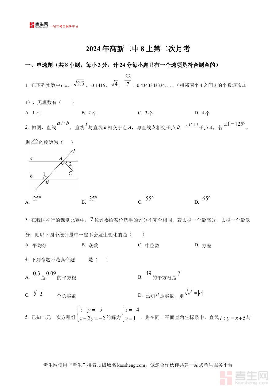 《精品解析:陕西省西安市高新第二初级中学2024—2025学年上学期12月考八年级数学试题(原卷版)》是针对陕西省西安市高新第二初级中学八年级学生的阶段性考试备考资料,对应2024—2025学年上学期12月月考数学学科的原卷呈现形式。该资料依托校内实际考试场景,为学生提供与本校月考直接匹配的练习资源,能够帮助学生提前接触符合校内教学进度和命题特点的试题内容,是学生进行月考准备的重要参考材料。