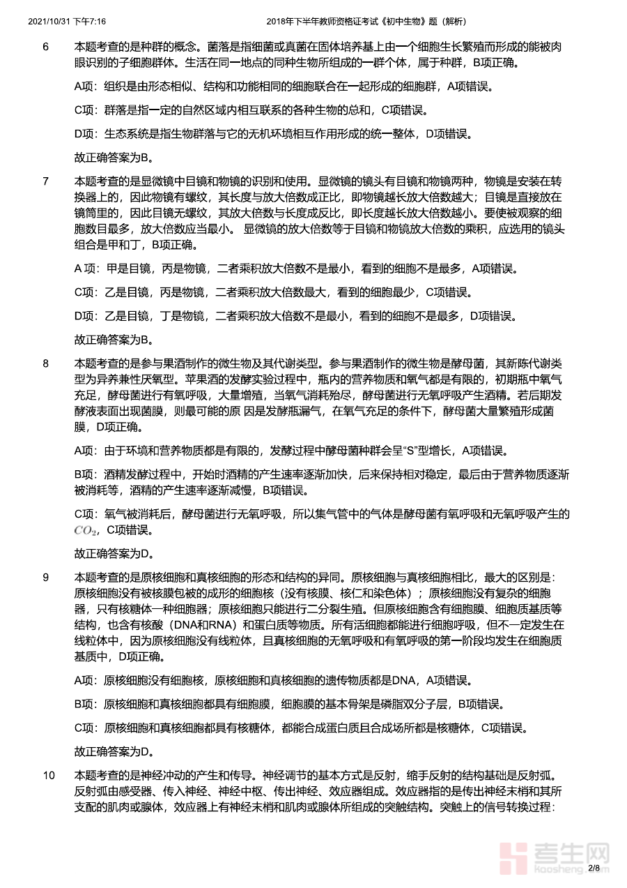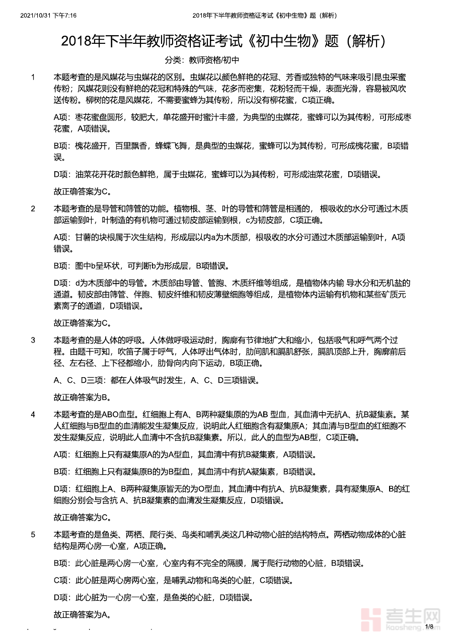 《2018年下半年教师资格证考试《初中生物》题(解析)》是2018年下半年针对初中生物学科的教师资格证考试配套备考资料,明确其对应考试的时间节点和学科方向,作为官方考试的真题解析类资料,为备考者提供了直接关联考试内容的参考依据,帮助考生快速把握考试的核心框架与考查维度。