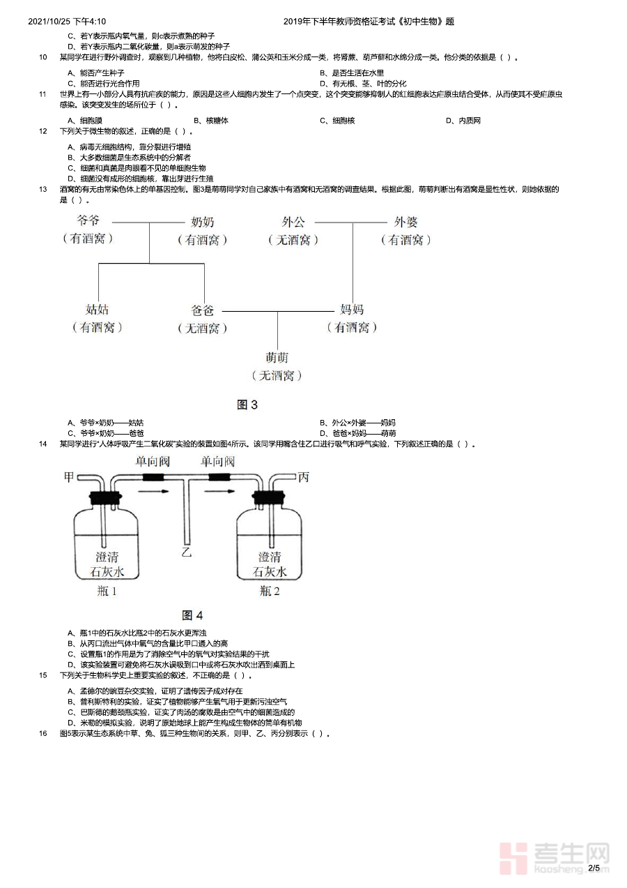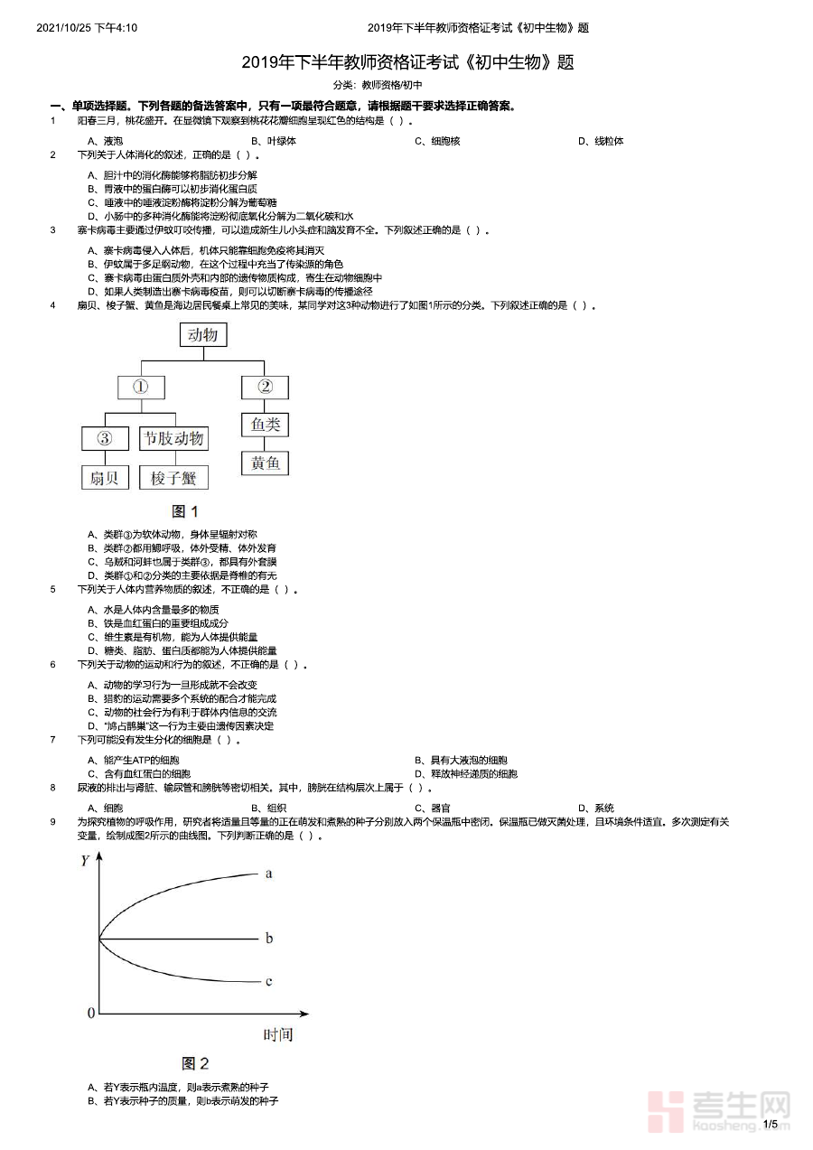 《2019年下半年教师资格证考试《初中生物》题》是针对2019年下半年全国教师资格证考试初中生物学科的备考资料,对应该时段教师资格证考试的初中生物专业科目内容,为考生提供了贴合当年考试要求的练习素材,是考生了解考试方向、熟悉考试形式的重要参考载体。