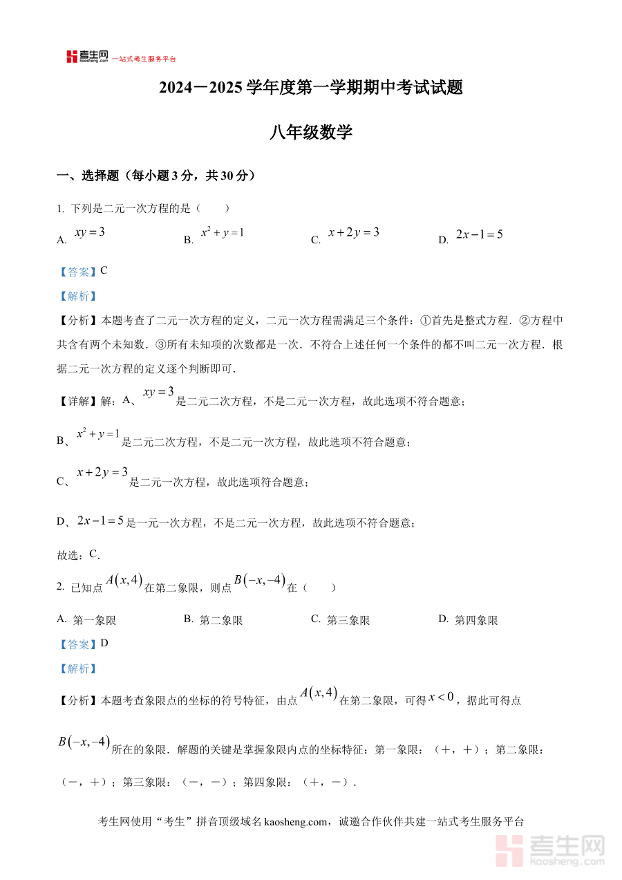 本资料适用人群主要包括西安高新一中2024-2025学年八年级在读学生、该年级数学授课教师以及学生家长。对于学生,它是期中复习不可或缺的参考资料,助力高效梳理知识体系、提升解题能力;对于教师,它可作为教学评估与指导辅助工具,帮助优化教学方案、精准定位学生问题;对于家长,能通过解析内容直观了解孩子学习状况与考试要求,更好配合学校与孩子开展针对性学习规划,共同促进学生阶段性成长。