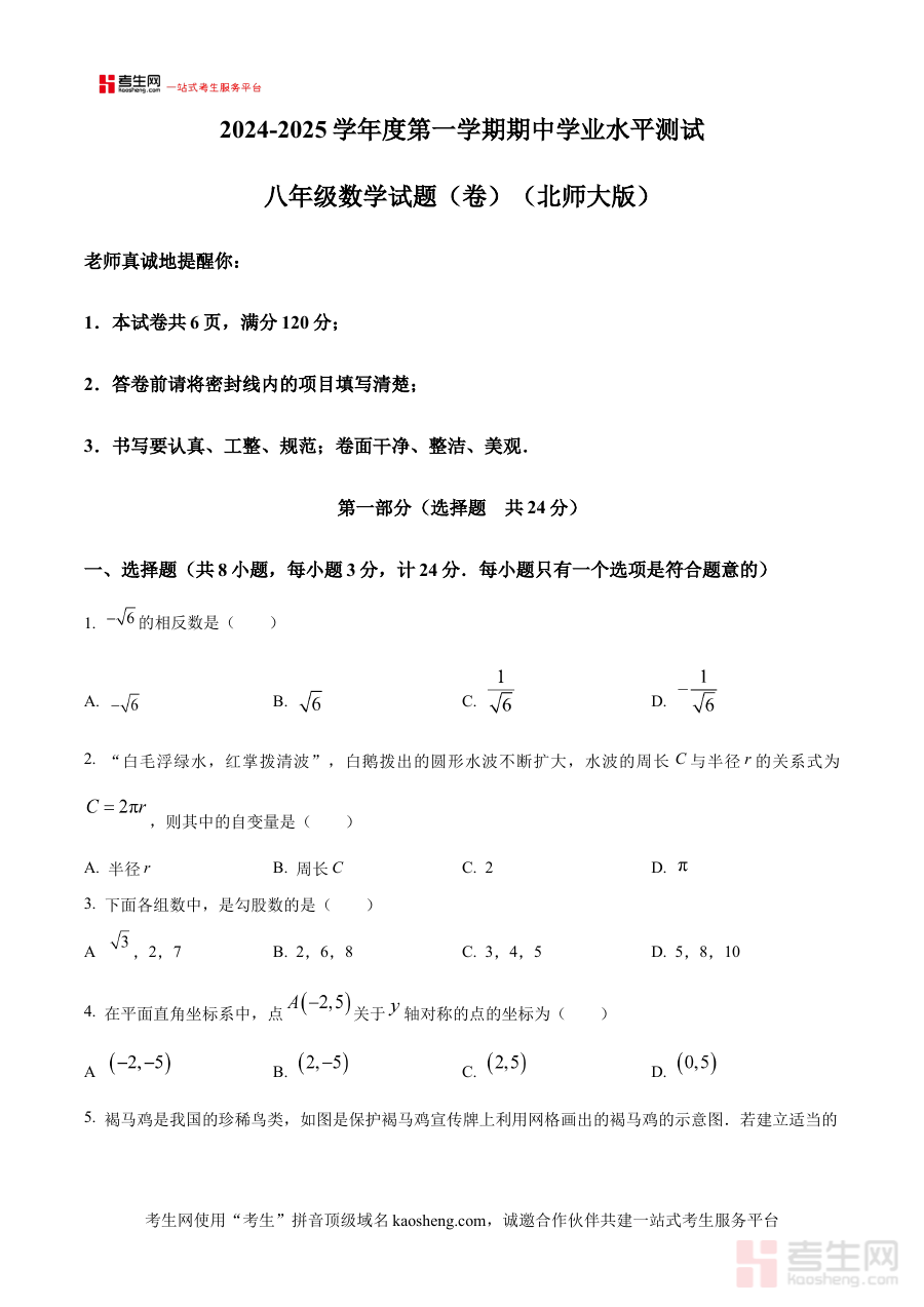 《精品解析:陕西省西安市部分学校2024-2025学年上学期八年级数学期中试卷(原卷版)》是针对陕西省西安市区域内部分学校在2024至2025学年第一学期举办的八年级数学期中阶段检测所设计的配套备考资源。该资料严格遵循当地学校的期中测试安排与学科教学进度,精准匹配八年级上学期数学学科的阶段性学习内容与考查目标,以原卷呈现的形式为使用者提供与区域学情高度契合的考试素材,确保资料的针对性与实用性,助力使用者更好地对接区域内学校的期中测试要求。