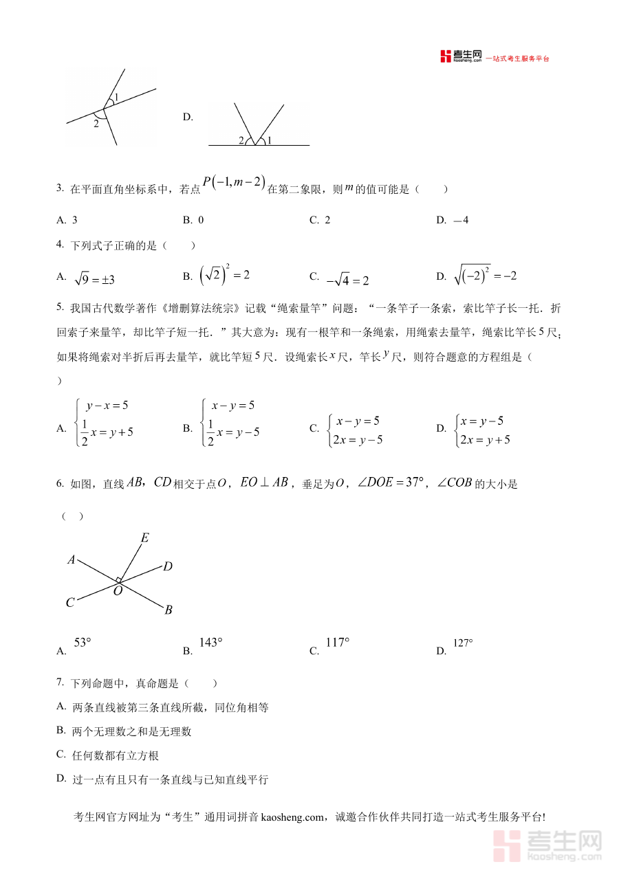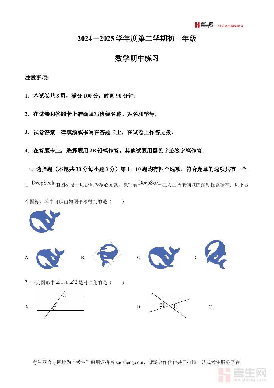 此资料主要适用于北京理工大学附属中学2024—2025学年下学期的七年级学生,也可作为关注该校期中数学考试模式的其他同类学校七年级学生的辅助参考材料;通过使用该原卷版试题,使用者能够提前熟悉该校期中数学考试的考查框架与要求,为阶段检测做好充分准备,助力提升数学学科的阶段性学习成果,为后续学习奠定坚实基础。