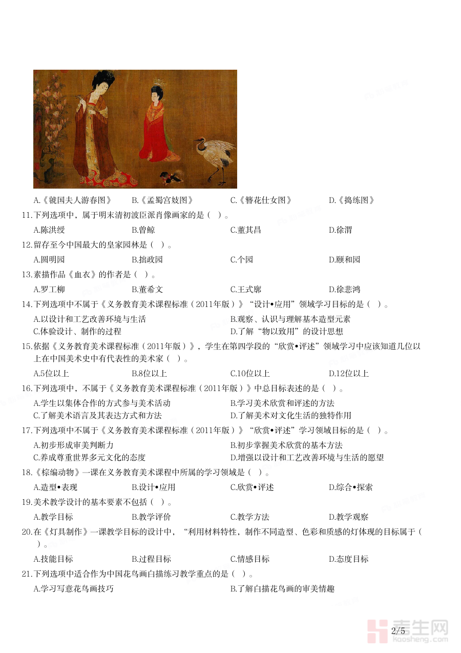 该资料可用于备考者进行自我学情诊断,通过对资料的分析和使用,备考者能够清晰识别自身在初中美术学科专业知识、教学技能等方面的不足;同时也可作为备考规划的关键依据,帮助备考者合理分配复习时间与精力到不同模块;此外还能用于阶段性复习效果的检测,及时调整复习策略以提升备考效率。