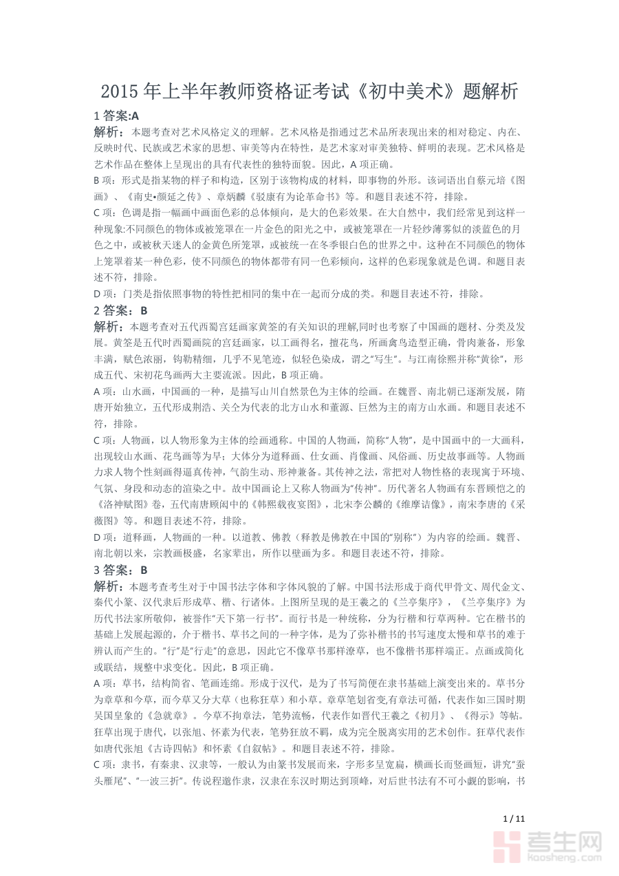 《2015年上半年教师资格证考试《初中美术》题解析》是针对2015年上半年全国教师资格证考试初中美术学科的专项解析资料。该资料聚焦该次考试的真题内容,旨在为考生提供全面且专业的题目解读与分析服务,是教师资格证备考过程中针对特定考试时段与学科的重要辅助材料,能够帮助考生快速把握该次考试的核心考查方向与命题特点,为后续复习提供清晰的参考依据。