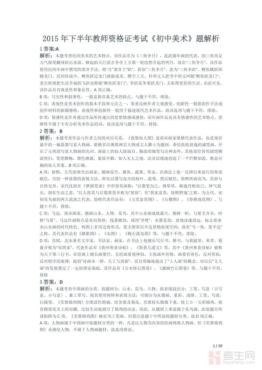 此资料适用于计划参加2015年下半年初中美术教师资格证考试的全体考生,尤其适合处于备考中期需要进行阶段检测与规划优化的考生群体。借助该资料,考生可实现对自身备考进度与知识掌握情况的精准评估,进一步明确后续复习的优先级与方法,增强应对考试的综合能力,为顺利通过考试奠定坚实基础。
