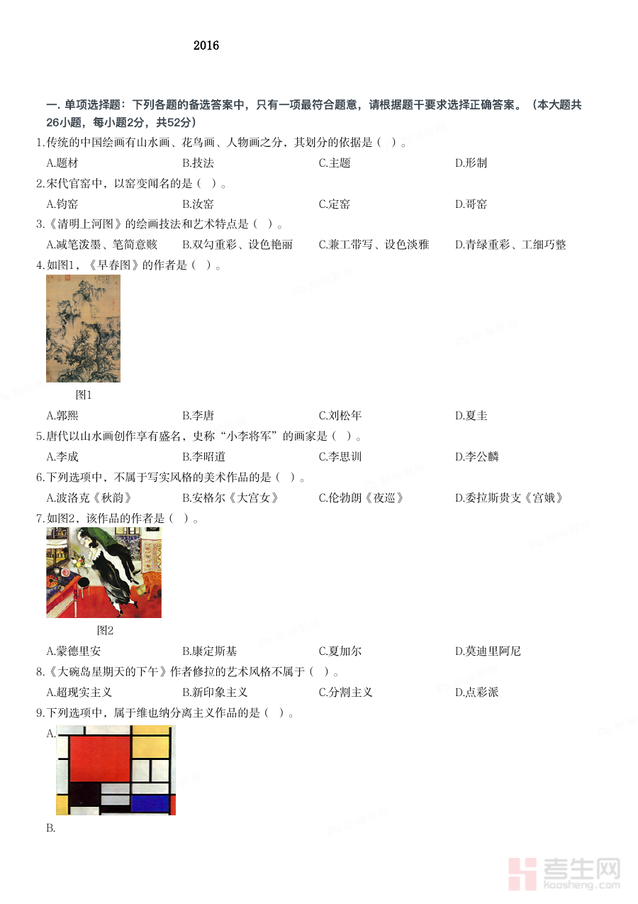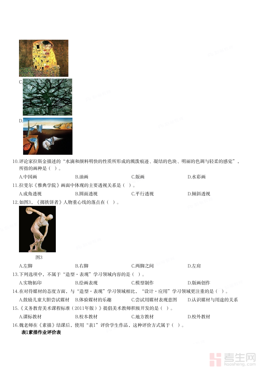 《2016年下半年教师资格证考试〈初中美术〉题》是针对2016年下半年国家统一组织的初中美术学科教师资格证考试编制的备考资料,其命题方向与该时期教师资格证考试初中美术科目的考核要求高度契合,能够为备考者提供贴近真实考试情境的练习素材。作为该年度下半年特定时段的考试真题类资料,它承载了当时初中美术教师资格考核的核心目标,是备考者了解考试形式与内容框架的重要参考依据之一,有助于备考者快速把握考试的核心方向与重点领域。