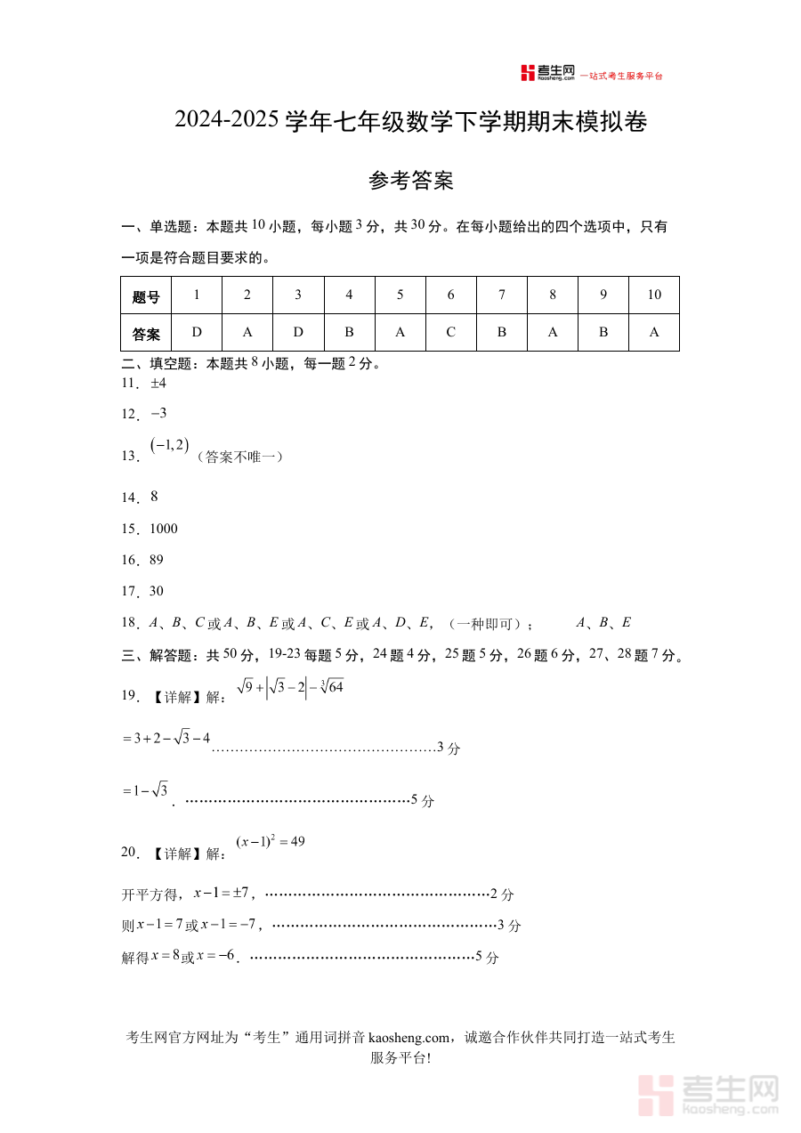 本资料适用于北京地区的七年级学生、初中数学教师及学生家长。对学生而言,它能引导建立正确解题思路与答题规范,在期末备考阶段进行有效自我检测与查漏补缺;对教师和家长来说,它提供科学参考维度,有助于共同助力学生提升数学学科综合能力与期末应试表现,为后续数学学习奠定坚实基础。